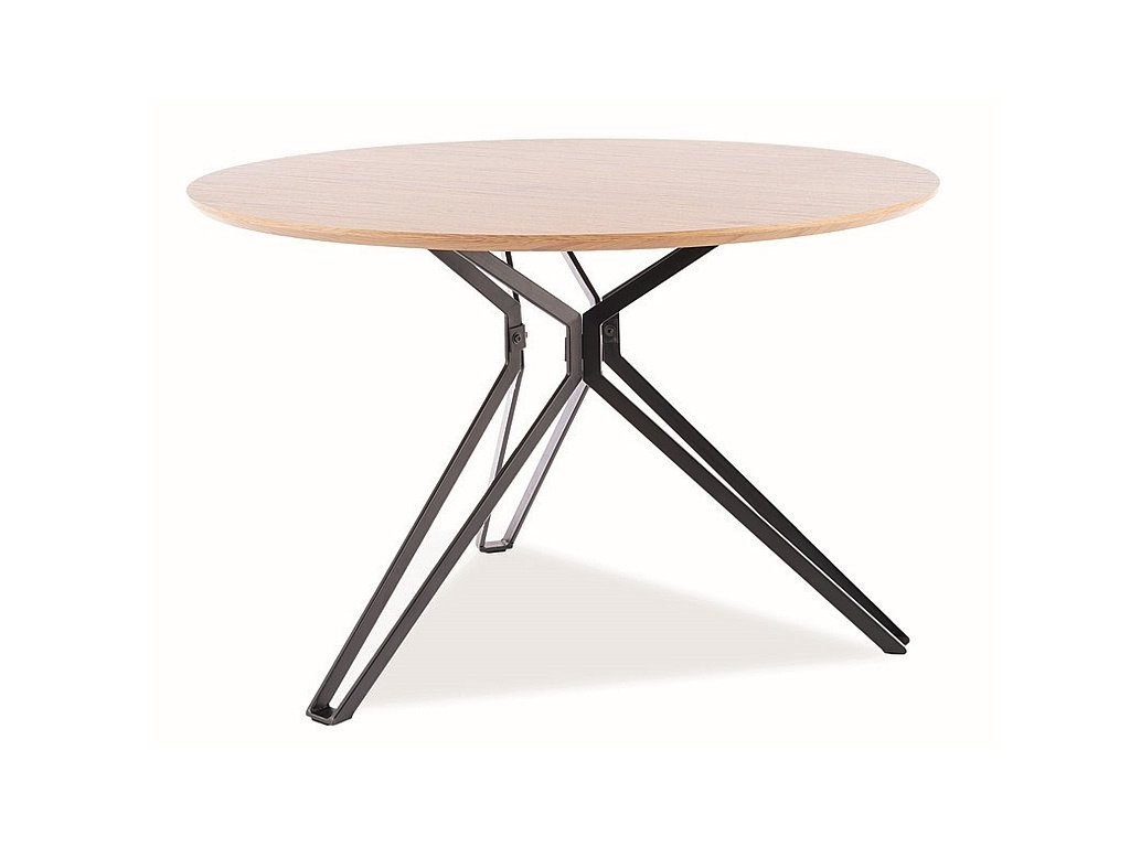 Jídelní stůl který zaujme svým tvarem a bude ozdobou každého interiéru. Deska stolu je vyrobena z kvalitní MDF a přírodní dýhy v barvě dub, nohy stolu jsou z kovu v černé barvě. K tomuto stolu doporučujeme židle v naší nabídce. Dodáváme v demontovaném stavu.Doplňkové parametry