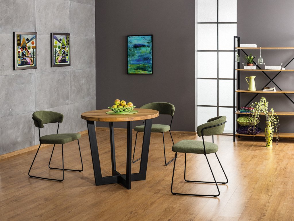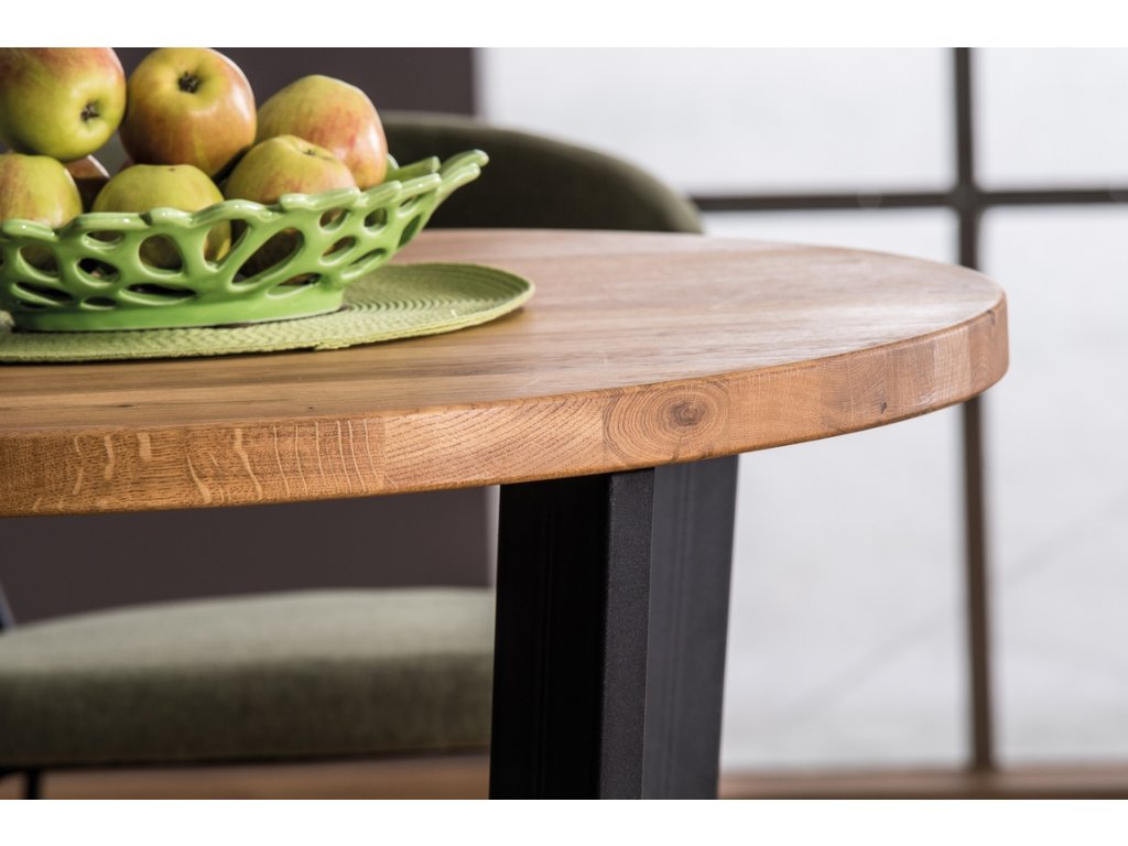 Kulatý jídelní stůl ve stylu loft zaujme svým netradičním tvarem a bude ozdobou každého interiéru. Deska stolu je vyrobena z masivního dubového dřeva o tloušťce 4 cm, nohy stolu jsou z kovu v černé barvě. K tomuto stolu doporučujeme židle v naší nabídce. Dodáváme v demontovaném stavu.Doplňkové parametry