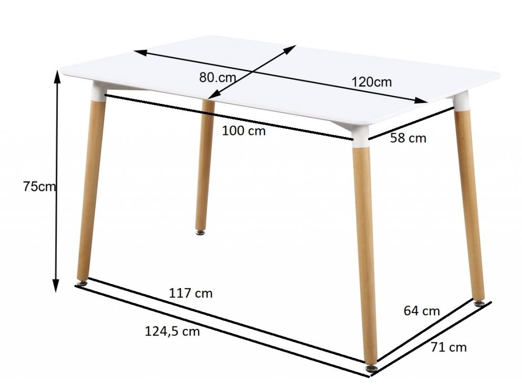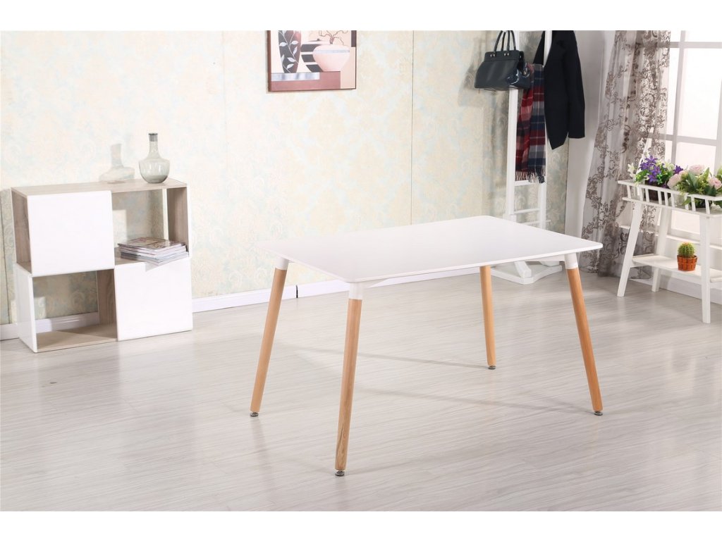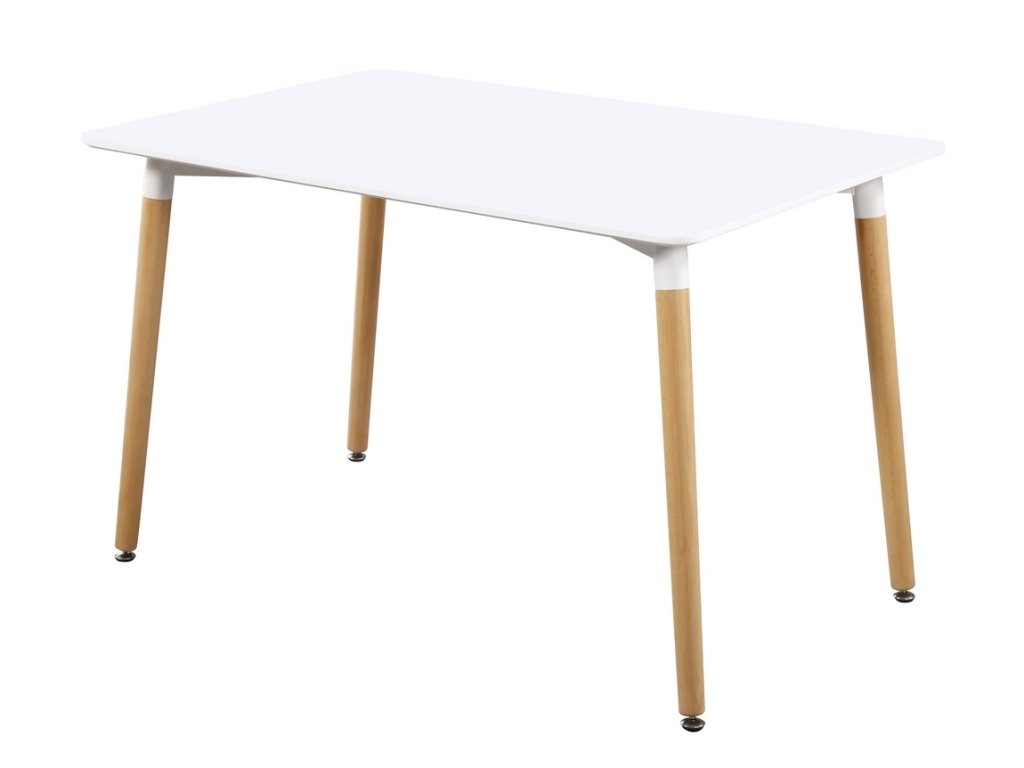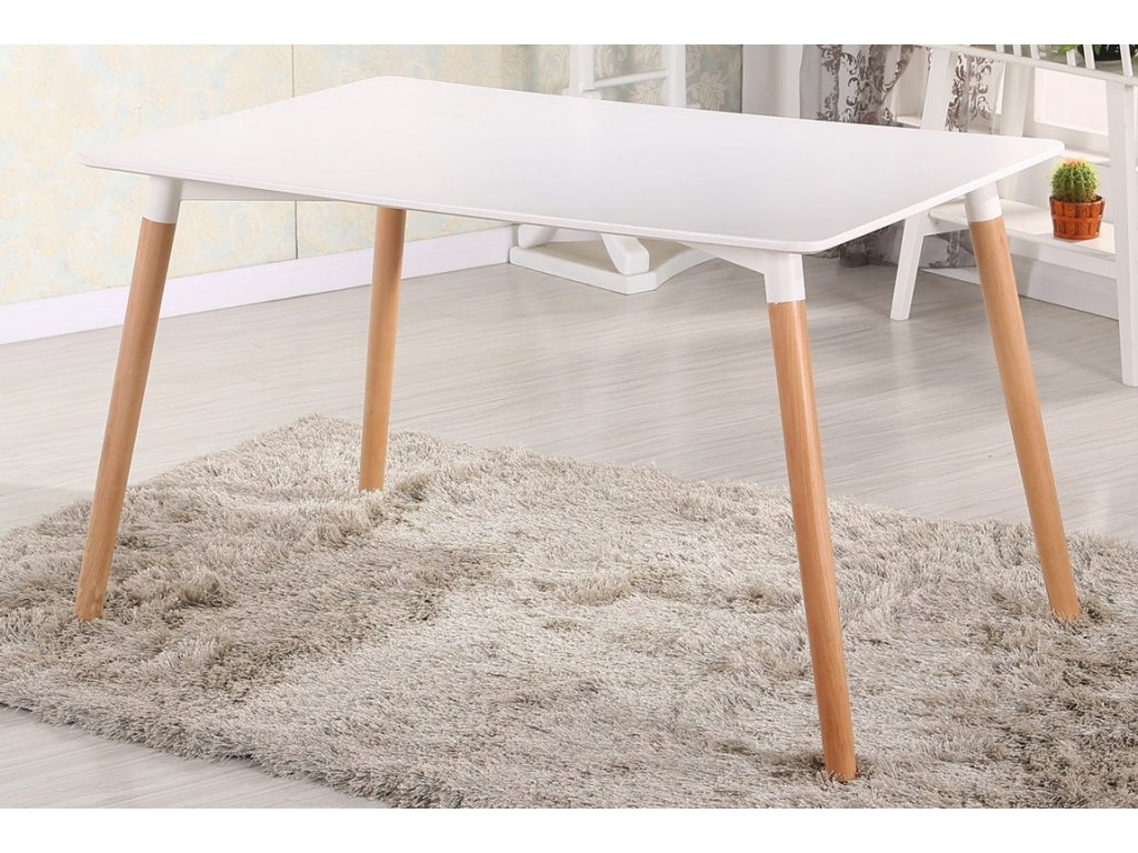 Moderní jídelní stůl. Stůl je vyrobený z kvalitního přírodního dřeva v kombinaci s MDF, nožky jsou v barvě buk, deska je bílé matné barvy. K tomuto stolu doporučujeme židle v naší nabídce.Doplňkové parametry