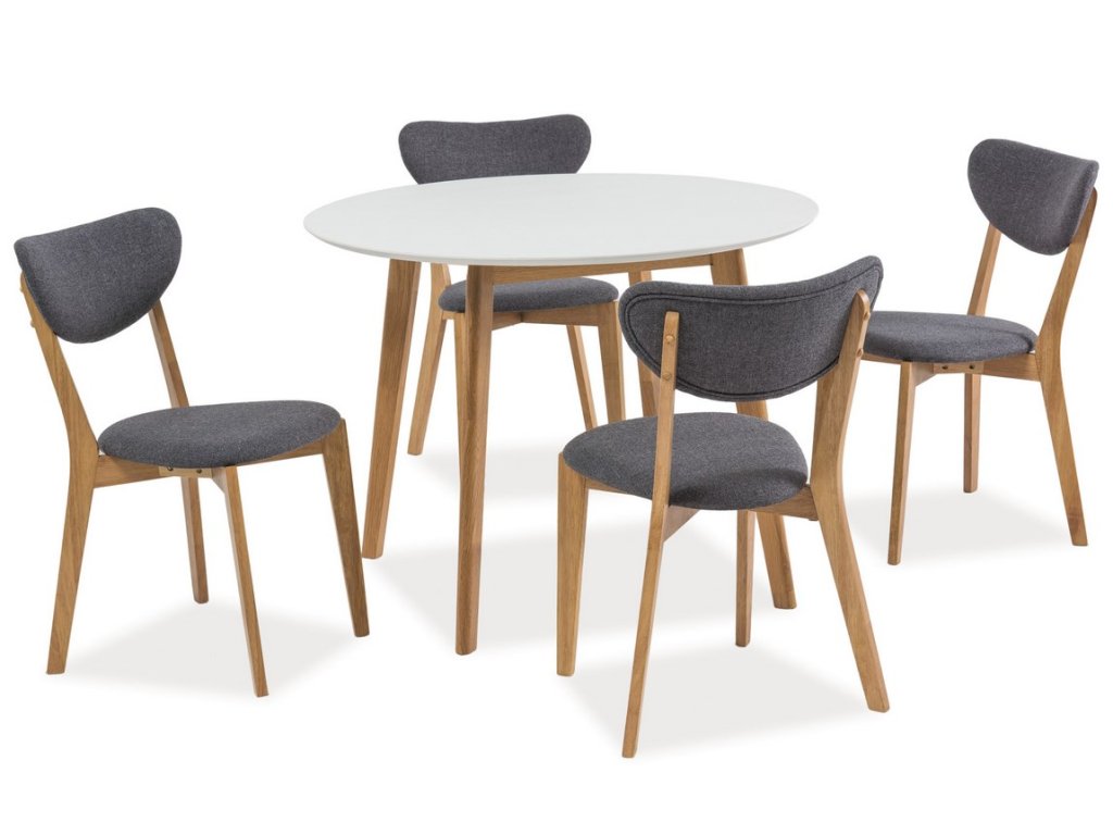Jídelní kulatý stůl ve stylu Scandinavian. Deska stolu je vyrobena z kvalitní MDF v kombinaci s přírodní dýhou v bílé barvě, nohy stolu jsou z masivního dřeva - dub. K tomuto stolu doporučujeme židle v naší nabídce. Dodáváme v demontovaném stavu.Doplňkové parametry