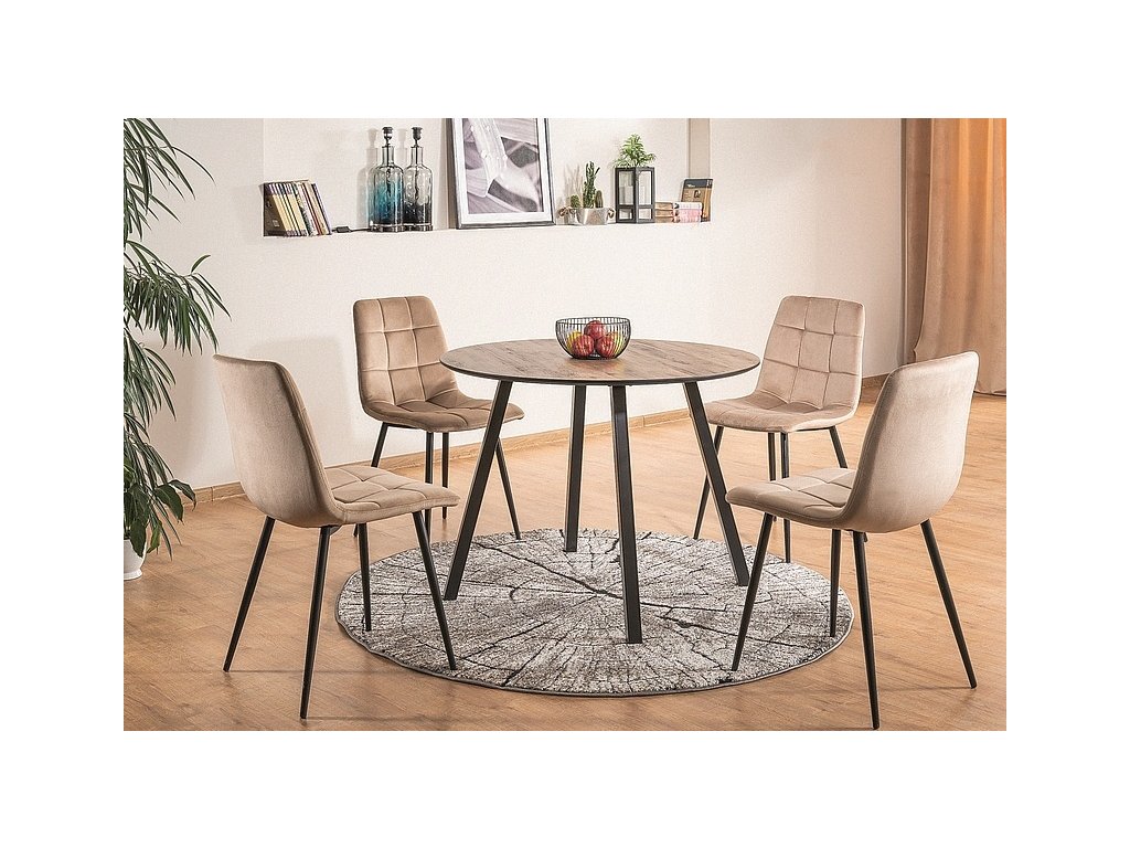 Jídelní stůl který zaujme svým tvarem a bude ozdobou každého interiéru. Deska stolu je vyrobena z kvalitní MDF a přírodní dýhy v barvě ořech, nohy stolu jsou z kovu v černé barvě. K tomuto stolu doporučujeme židle v naší nabídce. Dodáváme v demontovaném stavu.Doplňkové parametry