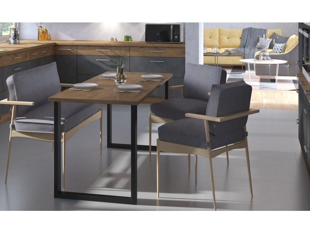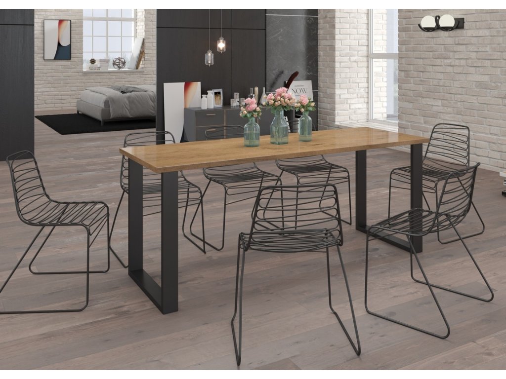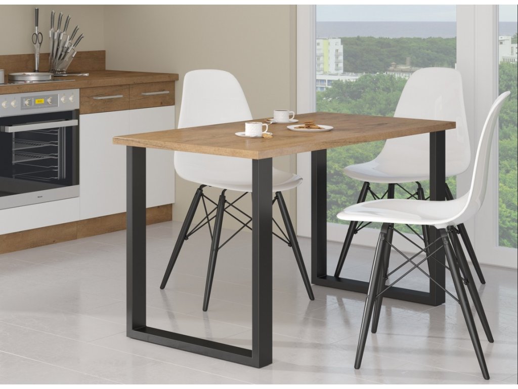 Jídelní stůl je vyroben v jednoduchém industriálním, stylovém a zároveň i moderním designu. Stolová deska je vyrobena z lamina tl. 28 mm v barvě dub lancelot, kovové nohy jsou práškově lakované v černé barvě (profil nohy 80x40 mm). Tyto jídelní stoly nabízíme v různých rozměrech. Dodáváme v demontovaném stavu.Doplňkové parametry
