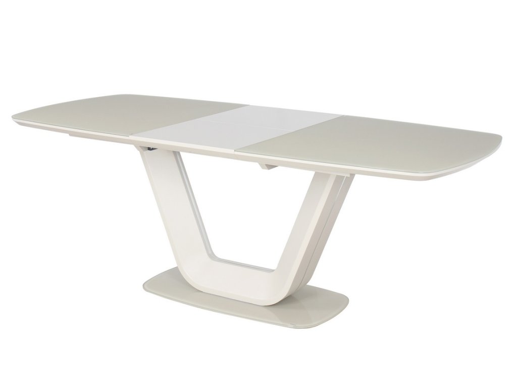 Moderní rozkládací jídelní stůl ve velmi elegantním a praktickém provedení bude dominantním prvkem v každé kuchyni, jídelně či kanceláři. Podstavec je vyroben z kvalitní MDF lakované krémovou barvou odolnou proti oděru, deska stolu je z MDF a z tvrzeného skla v barvě krém. Plocha stolu před rozložením je 90 x 160 cm, plocha stolu po rozložení je 90 x 220 cm. Stůl je určen až pro 8 osob. K tomuto stolu doporučujeme židle z naší nabídky.Doplňkové parametry