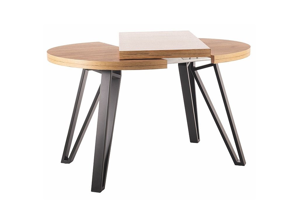 Kulatý rozkládací jídelní stůl v moderním stylu bude ozdobou každého interiéru. Deska stolu je vyrobena z laminované dřevotřísky v barvě dub artisan, nohy stolu jsou z kovu v barvě černé. Plocha stolu před rozložením je 100x100 cm, plocha stolu po rozložení je 168x100 cm. Vkládací kus k rozložení stolu je uložen samostatně. K tomuto stolu doporučujeme židle v naší nabídce. Dodáváme v demontovaném stavu.Doplňkové parametry