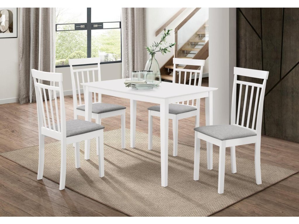 Jídelní stůl je navržen v moderním designu. Díky jednoduchému designu a neutrální bílé barvě je výjimečný. S jeho pomocí si můžete vkusně a jednoduše zařídit jídelnu nebo jídelní kout. Deska stolu je vyrobena z MDF desky dýhované přírodním dřevem. Ke stolu si můžete dokoupit židle ve stejném barevném provedení. Rozměry stolu: 112 × 72 × 73,8 cm. Dodáváme v demontovaném stavu.Doplňkové parametry