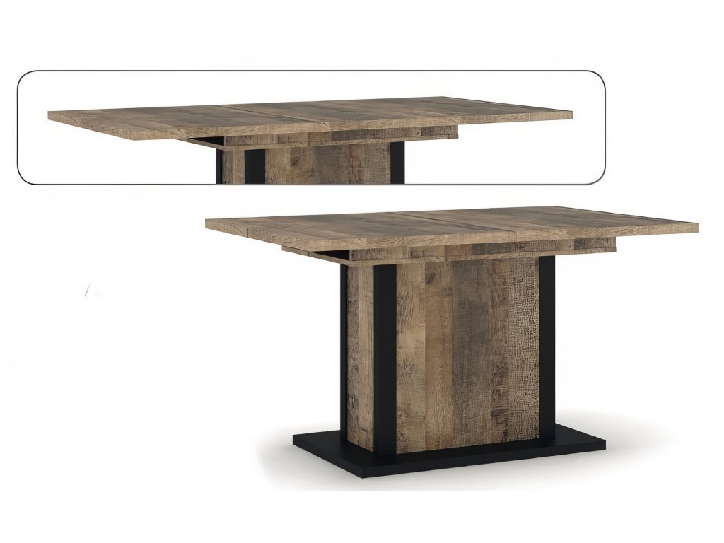 Rozkládací jídelní stůl 140 v industriálním stylu je vyroben z LTD desky v barevném provedení dub grange. Stabilní konstrukce s nožkama je z desky MDF černé barvy. Velikost jídelní plochy po rozložení je 180 x 90 cm. Nabídka komponentů této sektorové řady umožňuje sestavit si nábytek dle vlastních představ. Dodáváme v demontovaném stavu.Doplňkové parametry