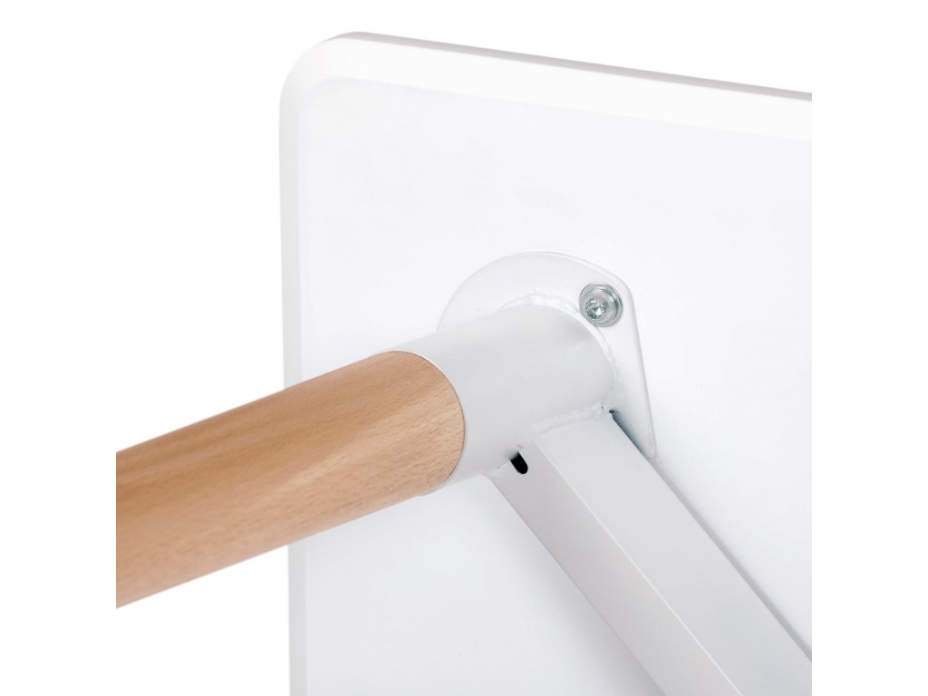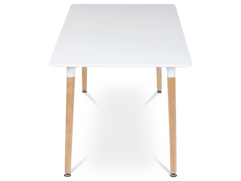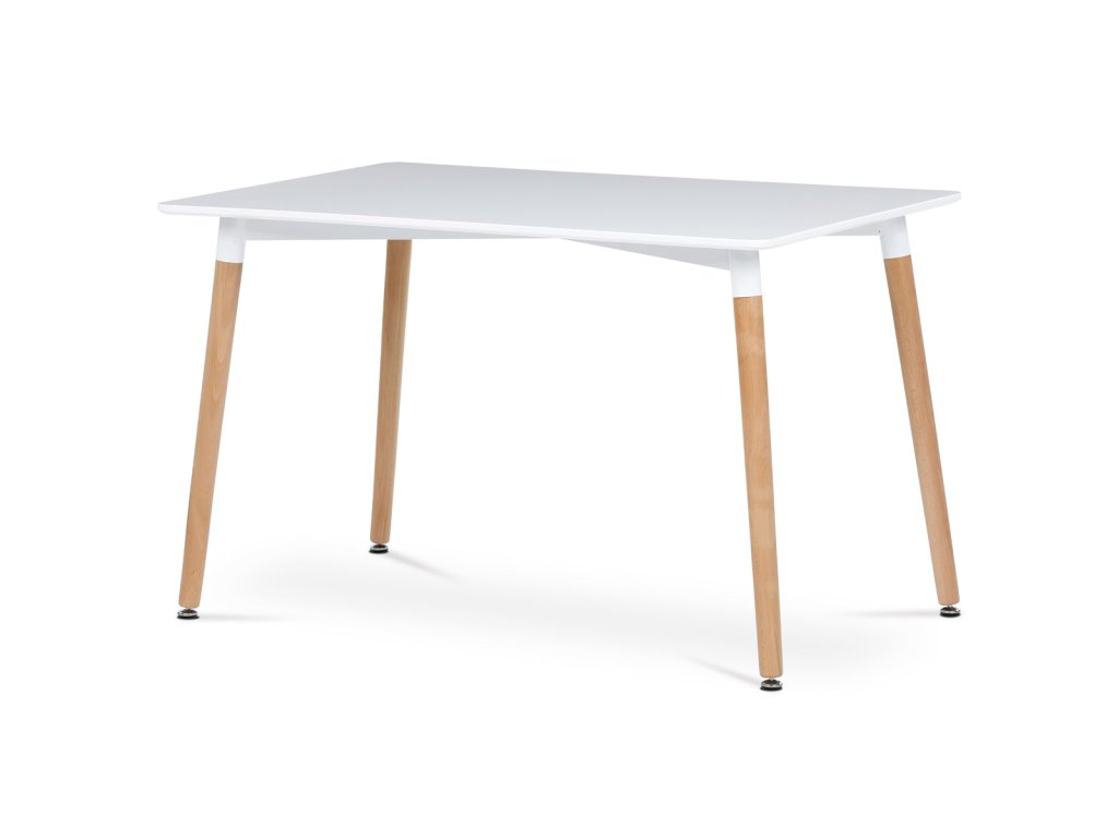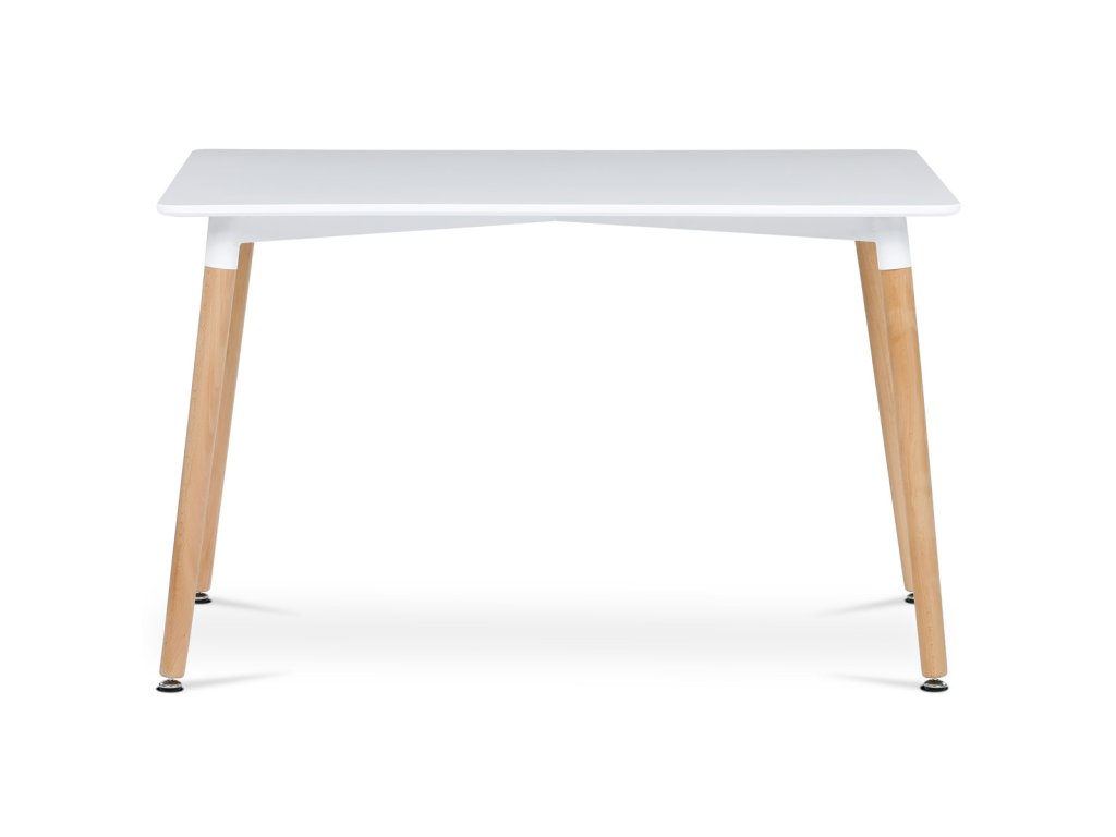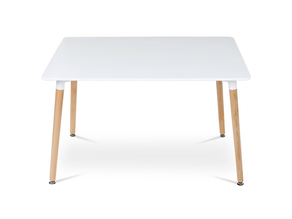 Jídelní stůl o rozměrech 120x80 cm kombinuje pevnou MDF desku s matnou bílou povrchovou úpravou a masivními dřevěnými nohami, které dodávají stabilitu a přírodní vzhled. Deska stolu je opatřena zaoblenými rohy pro zvýšení bezpečnosti a pohodlí při používání. Konstrukce nohou je vybavena rektifikačními prvky, které umožňují vyrovnání nerovností podlahy a zajišťují tak stabilní postavení stolu. Celkový design je jednoduchý a moderní, vhodný do různých typů interiérů. Stůl je určen pro každodenní použití v jídelnách či kuchyních, kde oceníte jeho pevnost a snadnou údržbu.Doplňkové parametry