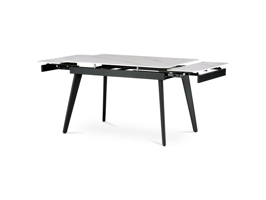 Stůl jídelní rozkládací, 120+30+30x80x74 cm, keramika, kov, bílá, černá