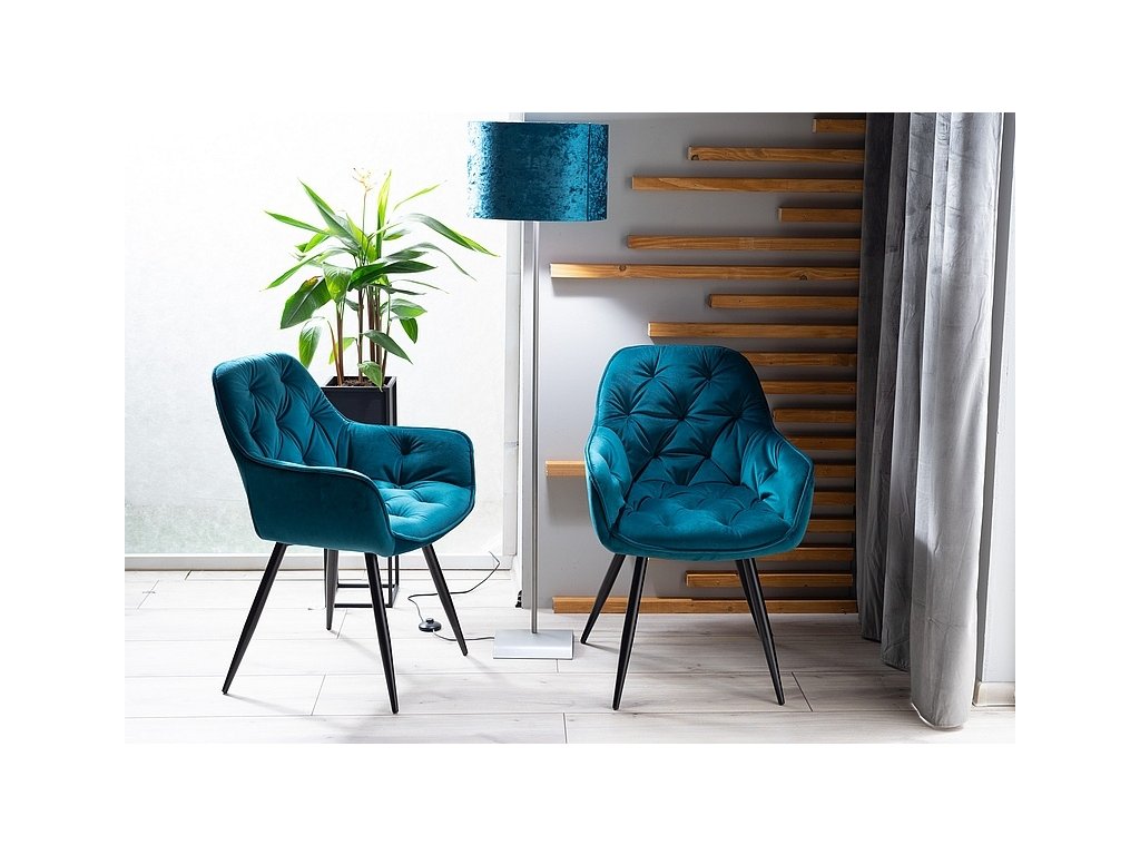 Jídelní čalouněná židle CHEERS velvet tyrkysová/černá