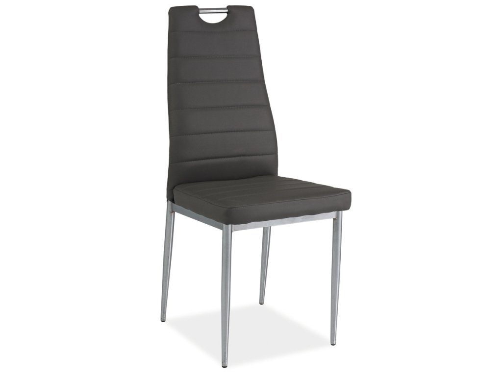 Elegantní čalouněná židle s prodlouženým opěradlem pro pohodlné sezení. Kovová konstrukce je pochromovaná, čalounění je vyrobeno z ekokůže v šedé barvě. Výška sedáku je 45 cm. Tato židle vynikne také v zasedací místnosti, čekárně či kanceláři. Židle doporučujeme ke stolům, které naleznete v naší uvedené nabídce.Doplňkové parametry