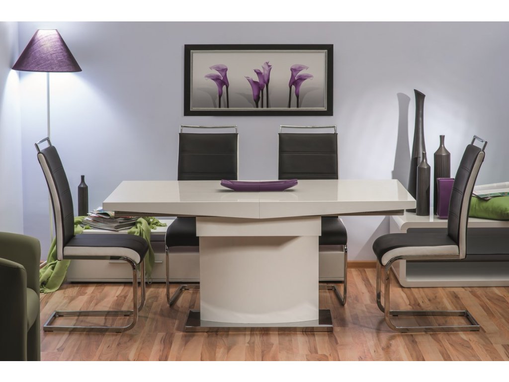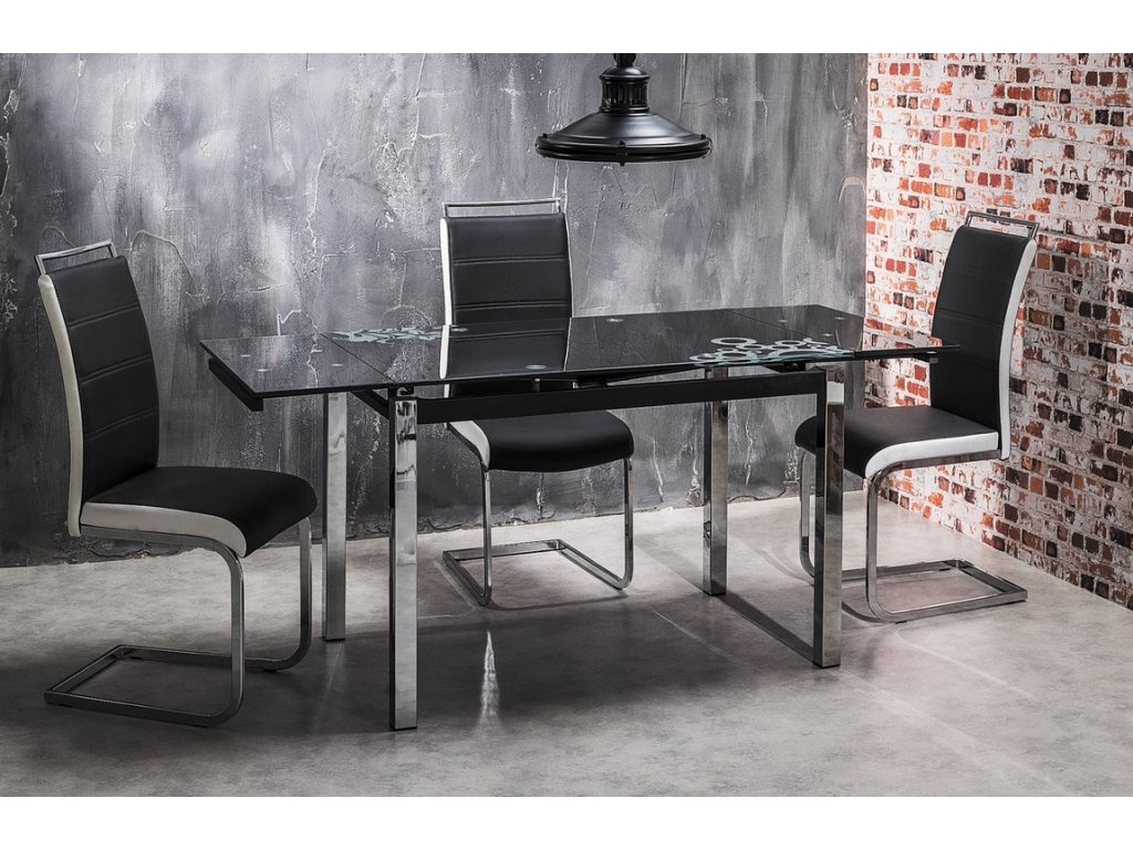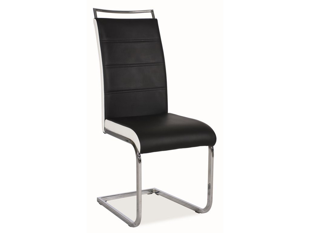Elegantní čalouněná židle pohupovací s ergonomickým tvarem. Zajímavě řešená kovová konstrukce je pochromovaná, čalounění je z ekokůže v barevném provedení - černá/bílá. Židle se hodí ke stolům, které naleznete v naší uvedené nabídce.Doplňkové parametry