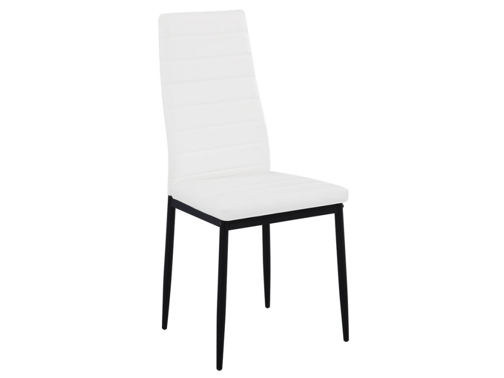 Elegantní čalouněná židle s prodlouženým opěradlem pro pohodlné sezení. Kovová konstrukce je v barvě černé, čalounění je vyrobeno z ekokůže bílé barvy. Výška sedu je 48,5 cm, hloubka sedu 41. Pohodlí a elegance do každého interiéru. Dodáváme v demontovaném stavu.Doplňkové parametry