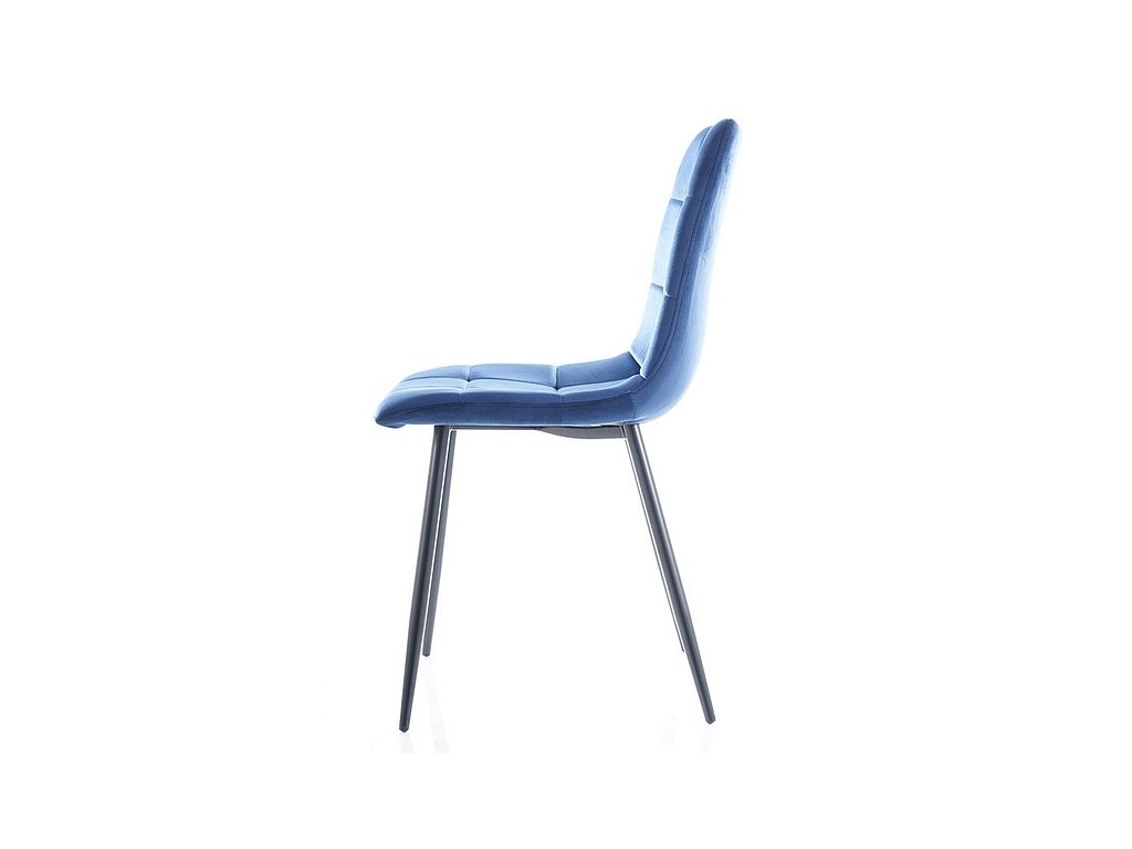 Atraktivní, velice pohodlná čalouněná židle vhodná nejen do Vaší jídelny a kuchyně, ale také do kanceláře, čekárny či recepce. Nohy jsou z kovu v černé barvě. Čalounění sedáku je vyrobeno z potahové látky aksamit v granátově modré barvě. Pohodlí a elegance pro každý interiér.Doplňkové parametry