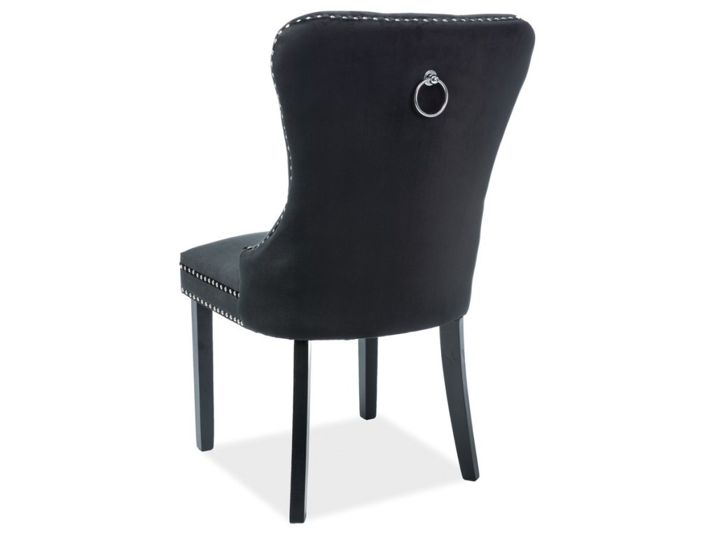 Atraktivní, velice pohodlná čalouněná židle - křeslo v novodobém stylu modern glamour. Nohy jsou ze dřeva v černé barvě, čalounění sedáku je vyrobeno z potahové látky Bluvel aksamit v modré barvě. Kovové zdobení po obvodu a na zádech židle dodá ještě větší nádech luxusu. Dodáváme v demontovaném stavu.Doplňkové parametry