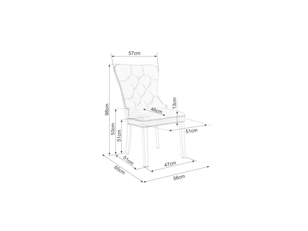 Atraktivní, velice pohodlná čalouněná židle - křeslo v novodobém stylu modern glamour. Nohy jsou ze dřeva v černé barvě, čalounění sedáku je vyrobeno z potahové látky Bluvel aksamit v šedé barvě. Kovové zdobení po obvodu a na zádech židle dodá ještě větší nádech luxusu. Dodáváme v demontovaném stavu.Doplňkové parametry