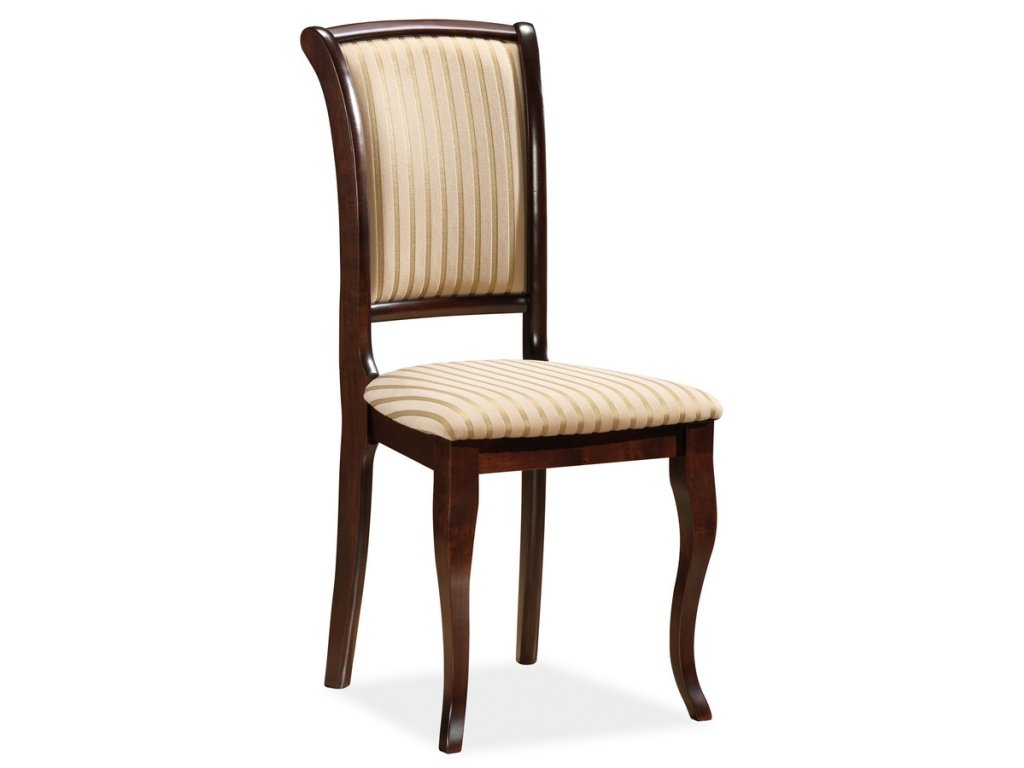 Elegantní jídelní židle v rustikálním duchu. Zajímavý vzhled stolu vyzdvihují jemné tvary a dokonalé detaily. Konstrukce je z kvalitního přírodního dřeva v barevném provedení tmavý ořech. Čalounění je vyrobeno z potahové látky T19 ( potah na velkém obrázku je ilustrační, správný odstín barvy je v čtverečku pod ním ).Doplňkové parametry
