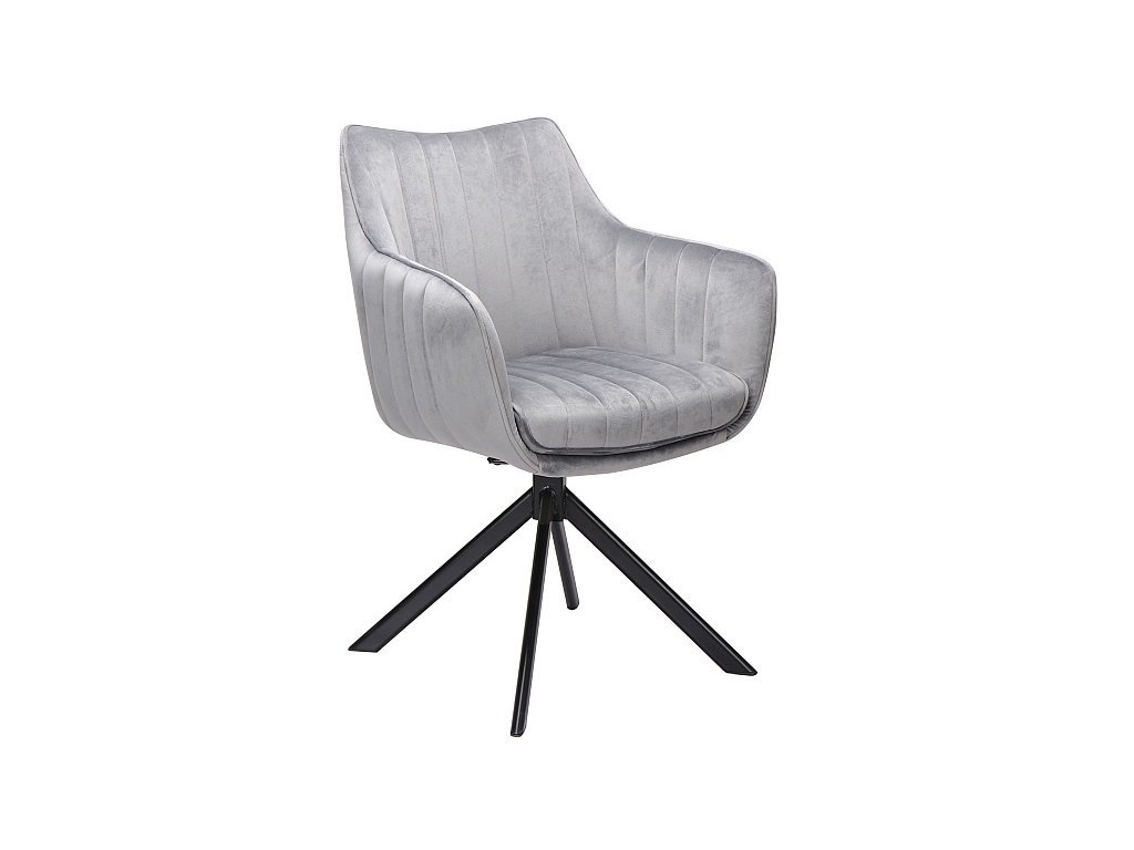 Atraktivní otočná čalouněná židle - křeslo, vhodná nejen do Vaší jídelny a kuchyně, ale také do kanceláře, čekárny či recepce. Kovová konstrukce je lakovaná černou matnou barvou, čalounění je z látky bluvel v šedé barvě s elegantním prošíváním. Židle se hodí ke stolům, které najdete v naší uvedené nabídce.Doplňkové parametry