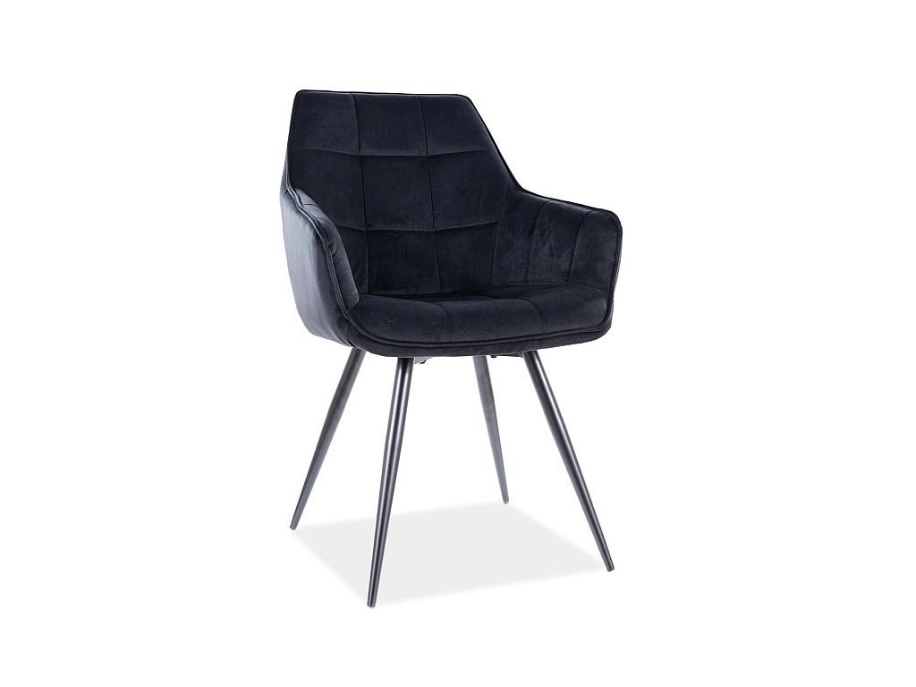 Atraktivní, velice pohodlná čalouněná židle vhodná nejen do Vaší jídelny a kuchyně, ale také do kanceláře, čekárny či recepce. Kovová konstrukce je lakovaná černou matnou barvou, čalounění je z látky bluvel v černé barvě s elegantním prošíváním. Židle se hodí ke stolům, které najdete v naší uvedené nabídce.Doplňkové parametry