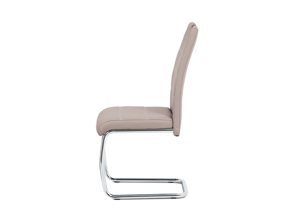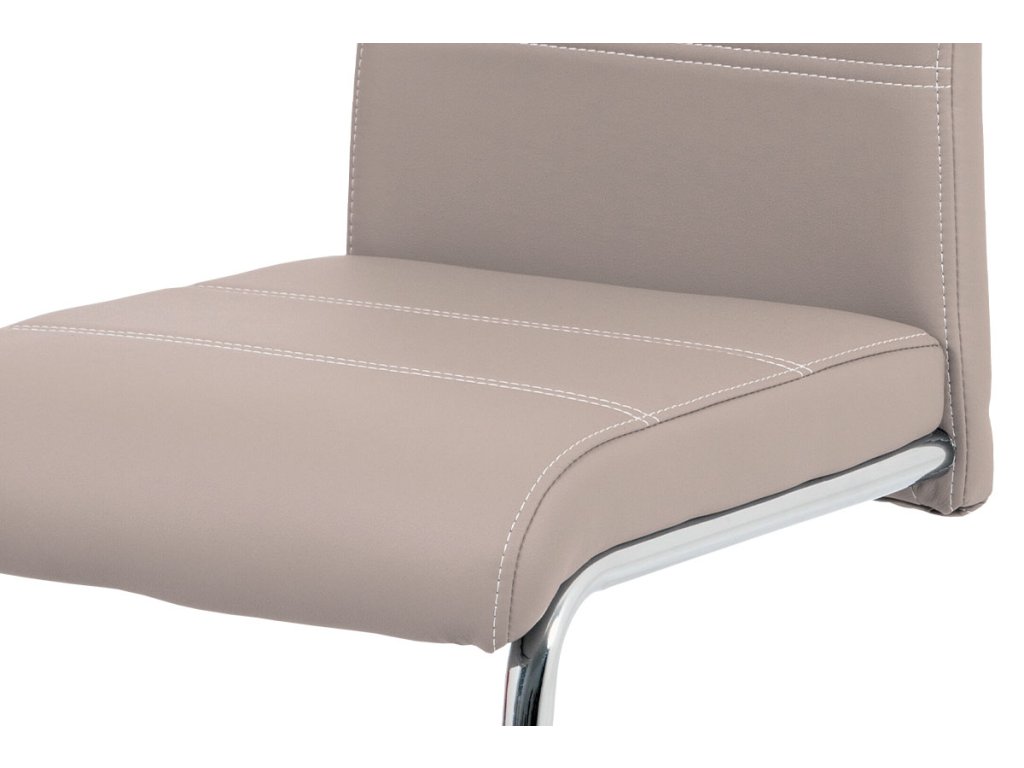 Jídelní židle, béžová, bílé prošití, kov chrom, HC-481 LAN