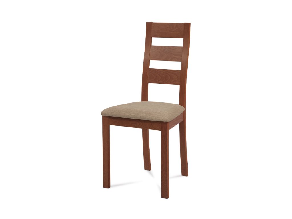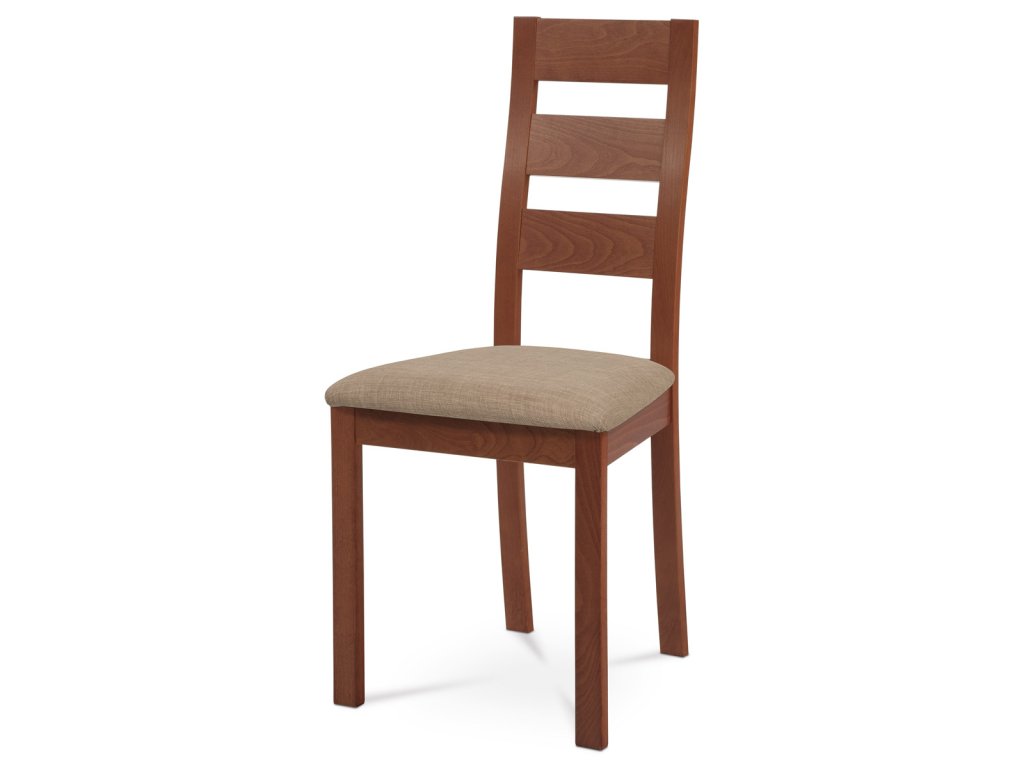 Jídelní židle, masiv buk, barva třešeň, látkový béžový potah