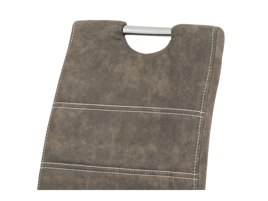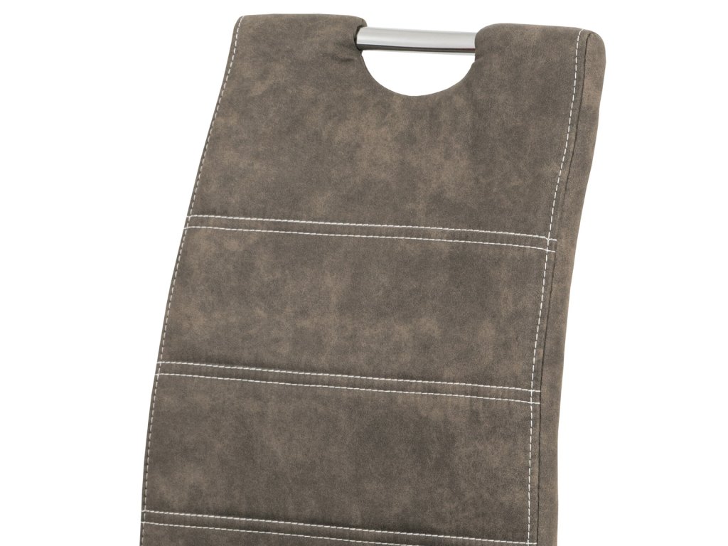 Jídelní židle s označením HC-483 BR3 nabízí potah z hnědé látky v dekoru vintage kůže, která kombinuje estetiku tradičního vzhledu s praktičností textilního materiálu. Pevná chromovaná kovová podnož je navržena v pohupovém provedení, které přispívá k příjemnému sezení a mírnému odpružení. Sedák i opěradlo jsou ergonomicky tvarované a čalouněné pro komfort během delšího posezení. Židle nemá područky ani možnost výškového nastavení, což ji činí vhodnou především pro jídelní prostory s omezeným prostorem. Stabilní kovová konstrukce zajišťuje nosnost odpovídající běžnému užívání v domácnostech i komerčních provozech.Doplňkové parametry