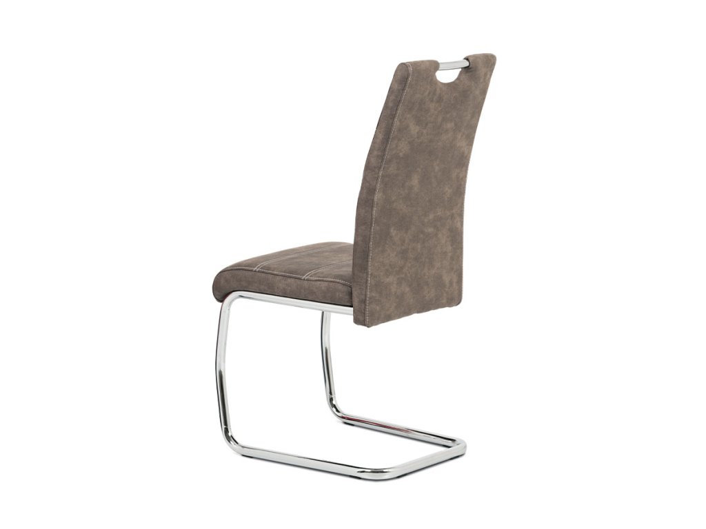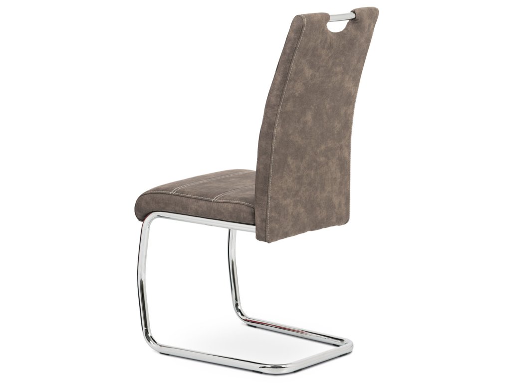 Jídelní židle, potah hnědá látka COWBOY v dekoru vintage kůže, kovová chromovaná