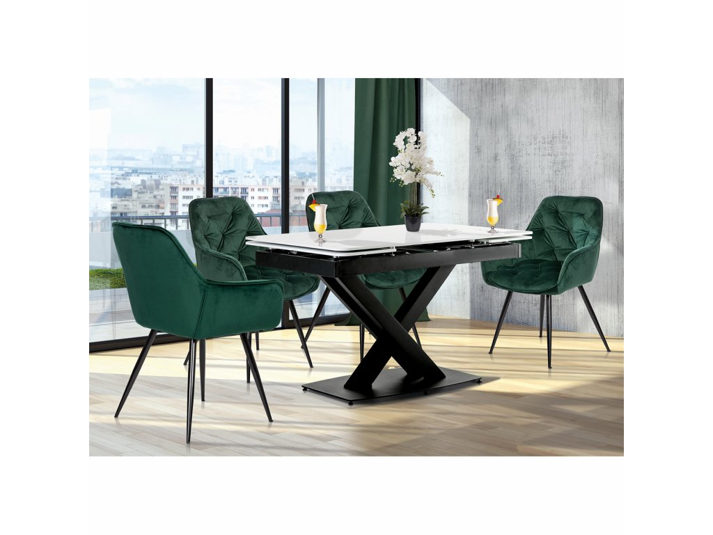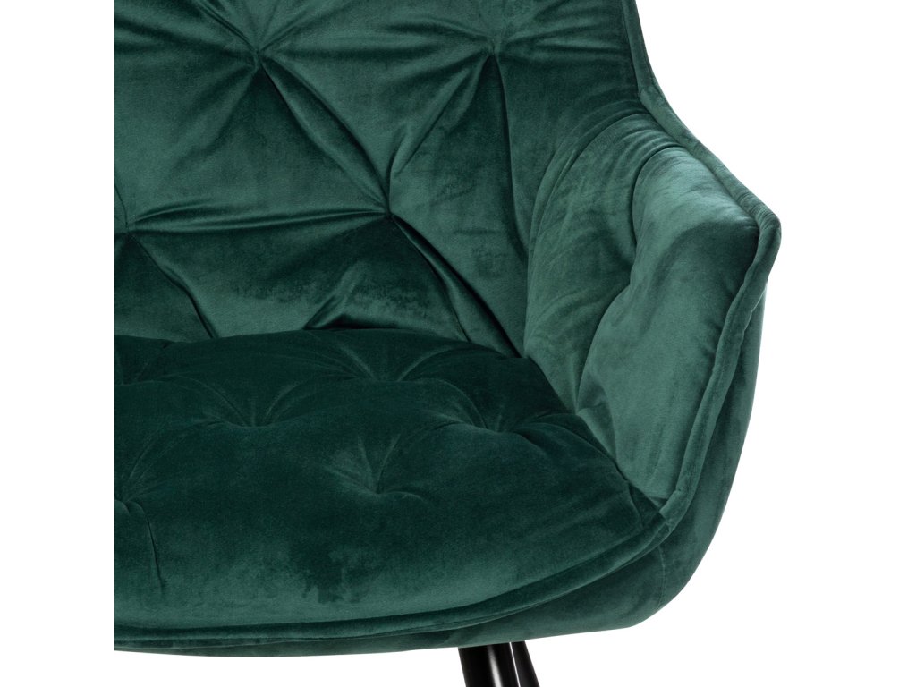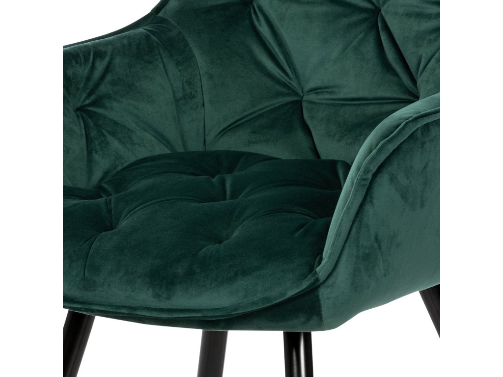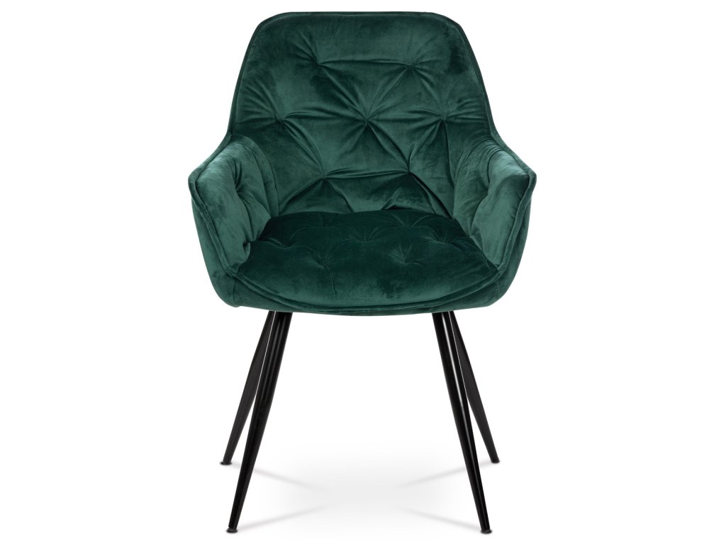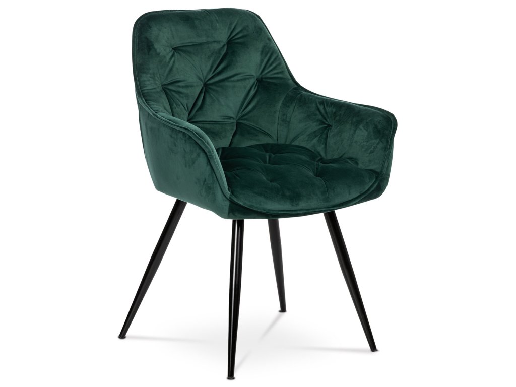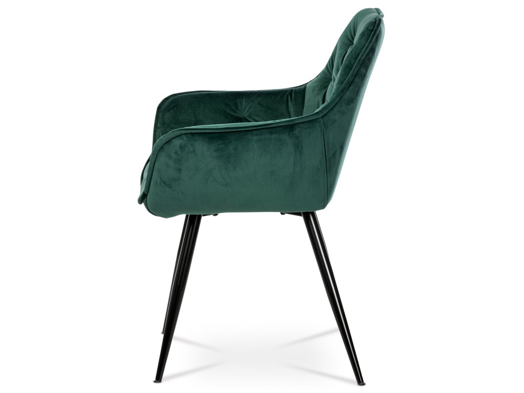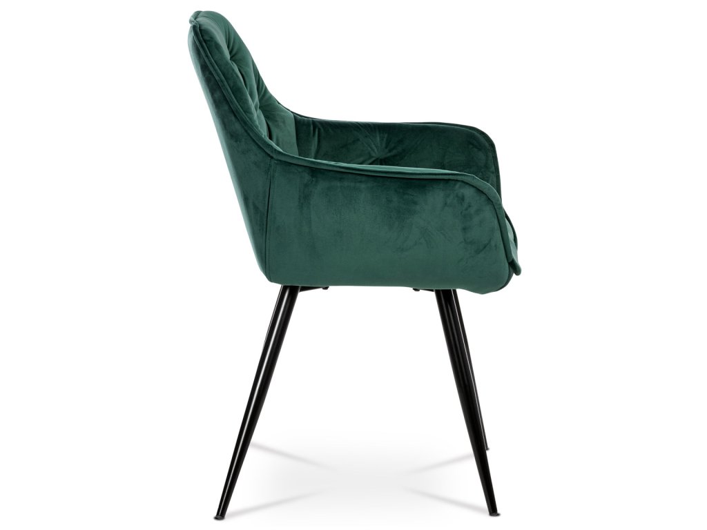 Jídelní židle s označením DCH-421 GRN4 nabízí komfortní sezení díky sametovému potahu v zelené barvě, který je příjemný na dotek a snadno se udržuje. Čalouněné opěradlo a sedák jsou zdobeny designovým prošitím, které dodává židli elegantní vzhled a zároveň zvyšuje její odolnost. Pevná čtyřnohý podnož z kovu s černým lakem zajišťuje stabilitu a dlouhou životnost. Židle je vybavena integrovanými područkami, které podporují pohodlnou pozici při sezení. Díky svým rozměrům a konstrukci je vhodná pro použití v jídelnách i moderně zařízených interiérech.Doplňkové parametry
