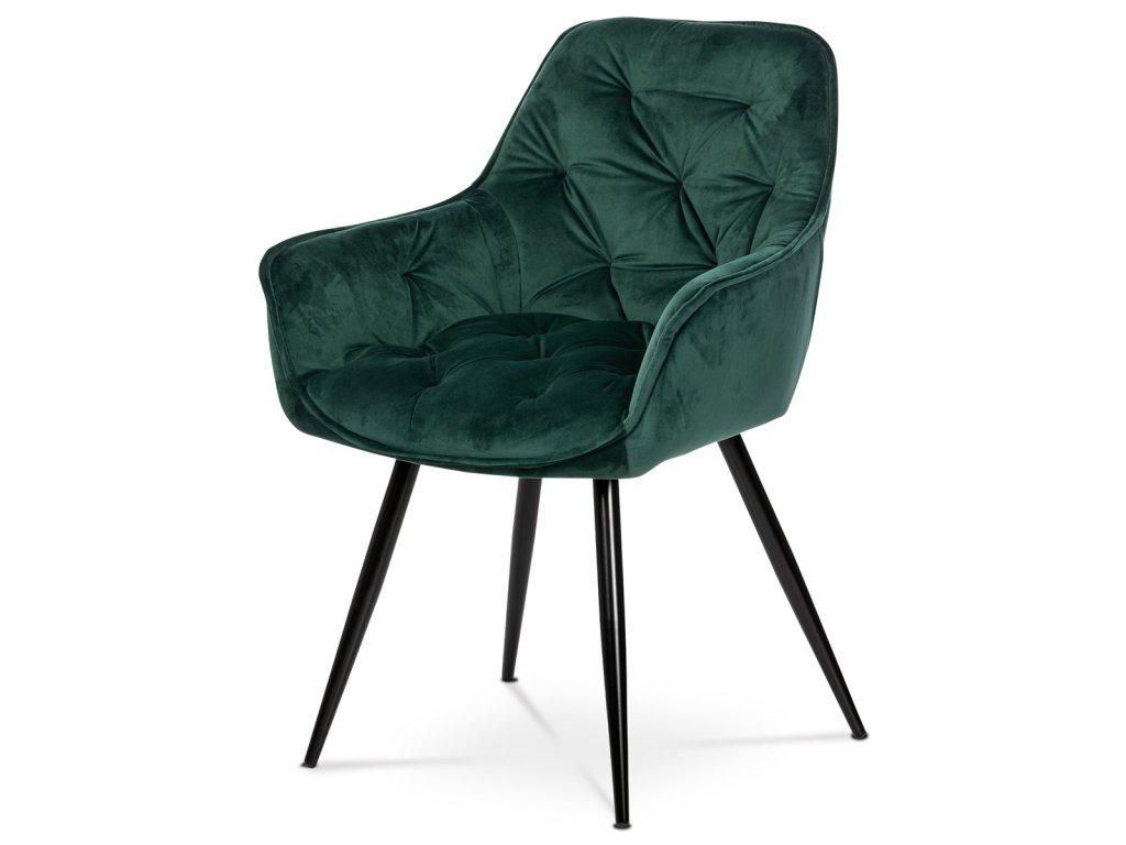 Jídelní židle, potah zelená sametová látka, kovová 4nohá podnož, černý lak