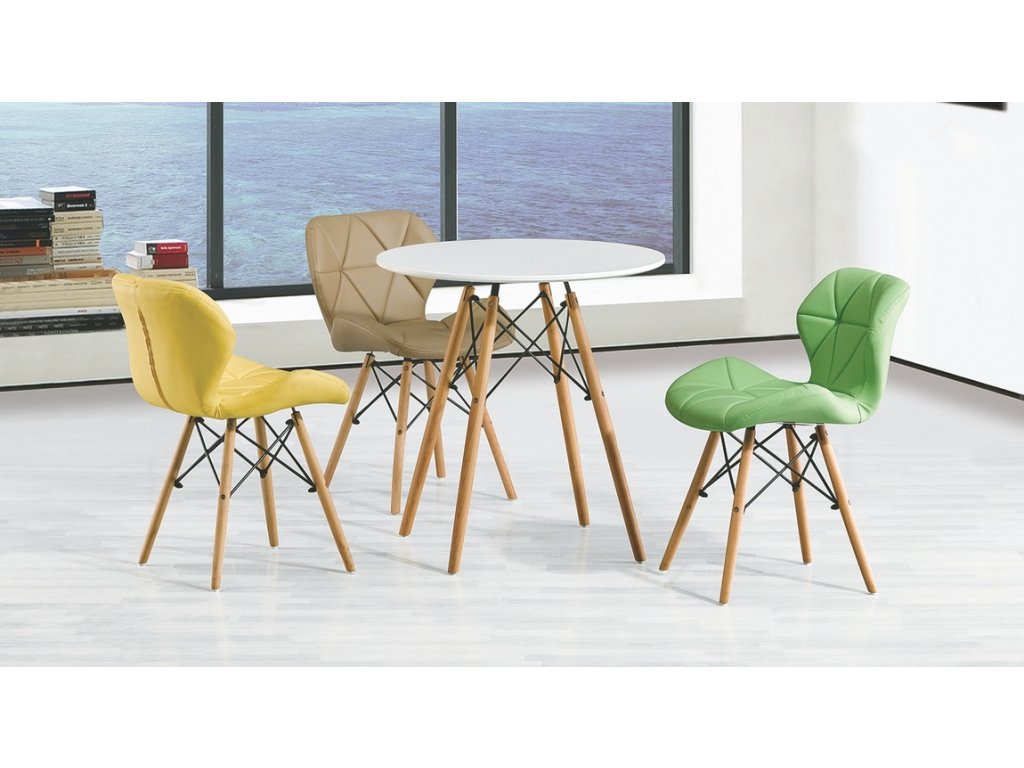 Elegantní čalouněná židle s ergonomickým tvarem. Zajímavě řešená dřevěná konstrukce je v barvě buk s kovovými prvky, čalounění sedáku s prošitím je z ekokůže žluté barvy. Výška sedu je 45 cm. Židle se hodí ke stolům, které naleznete v naší uvedené nabídce.Doplňkové parametry