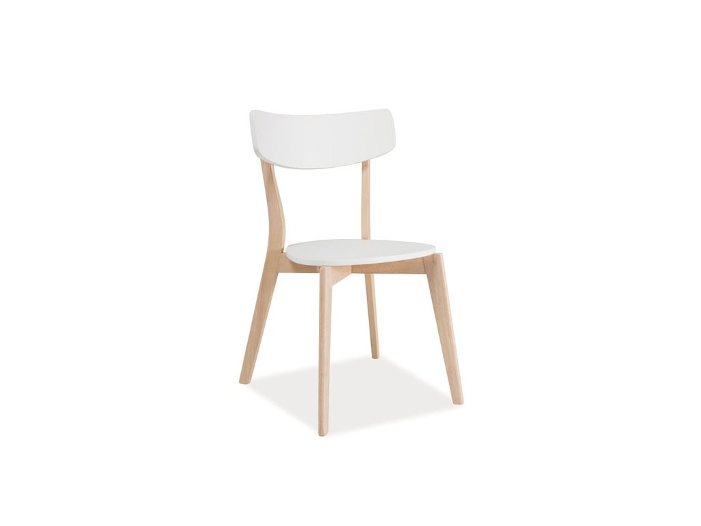 Elegantní jídelní židle v moderním pojetí. Zajímavý vzhled vyzdvihují jemné tvary a dokonalé detaily. Konstrukce je z kvalitního přírodního dřeva v barvě bělený dub, sedák je z MDF bílé barvy, odolné proti poškrábání, poškození, vlhkosti a vysokým teplotám. Pohodlí a elegance pro každý interiér. Tyto jídelní židle nádherně doplní například stůl TIBI nebo COMBO, který také najdete v naší nabídce.Doplňkové parametry