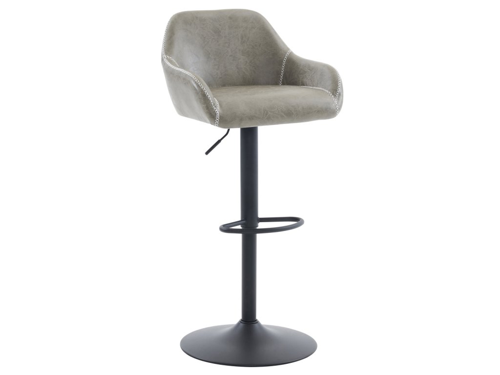 Židle barová, potah šedá látka v dekoru vintage kůže, černá podnož