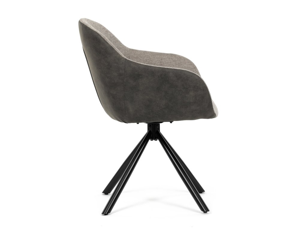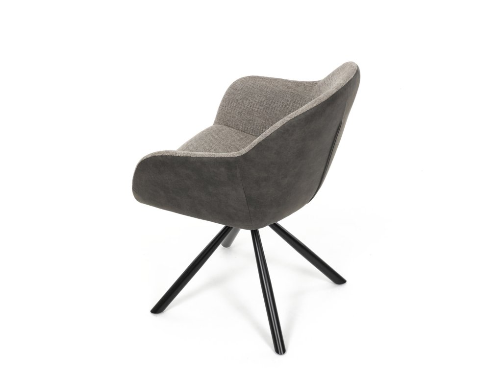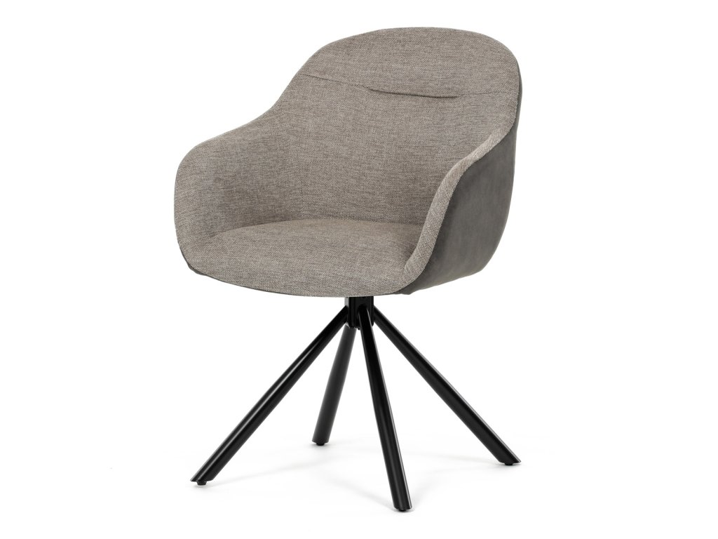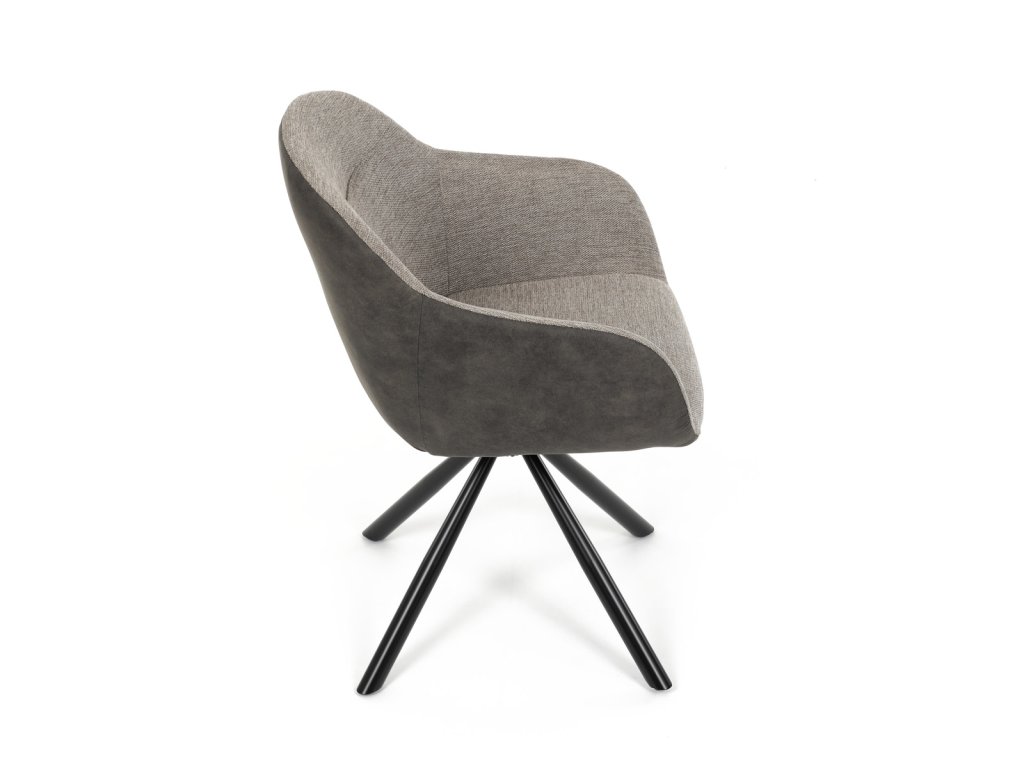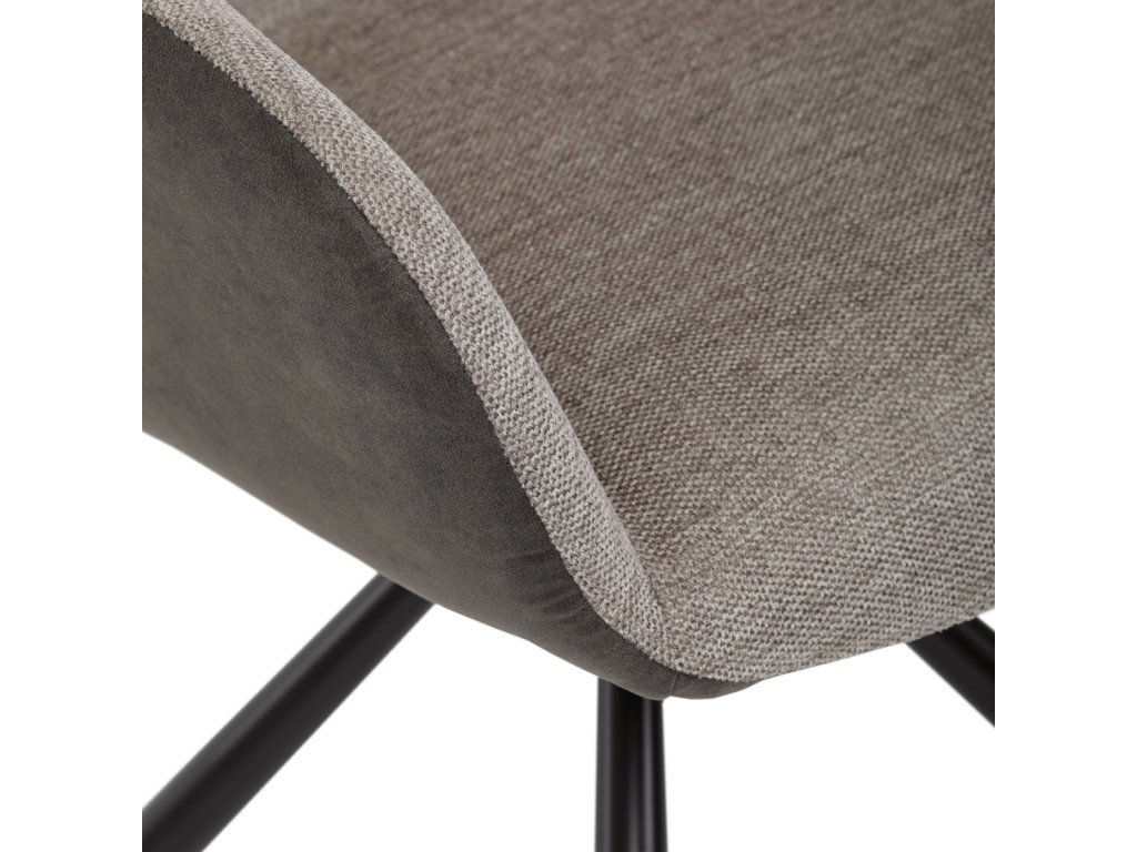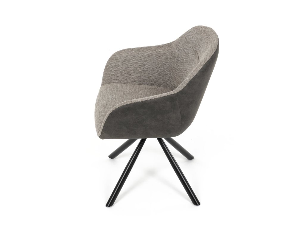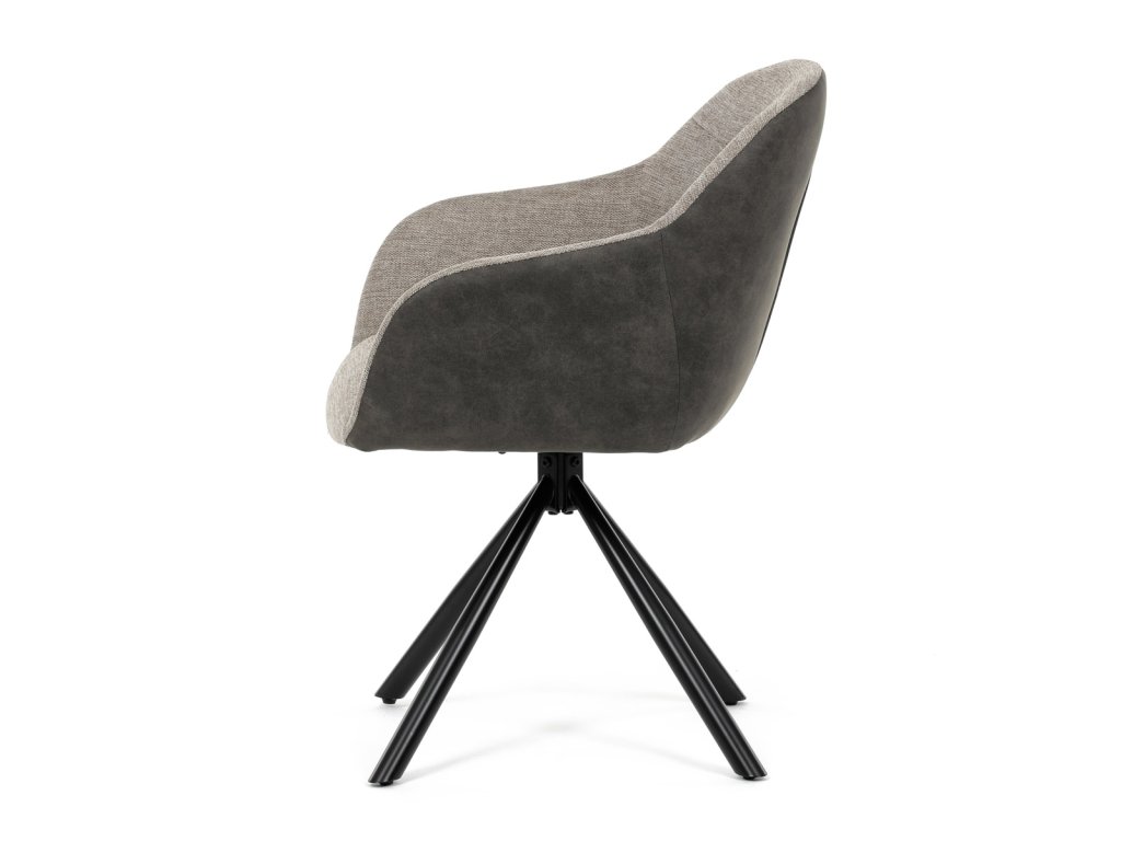 Židle jídelní, béžová látka a tmavě šedá látka v dekoru vintage kůže, černý kov, otočná P90°+ L90° s vratným mechanismem