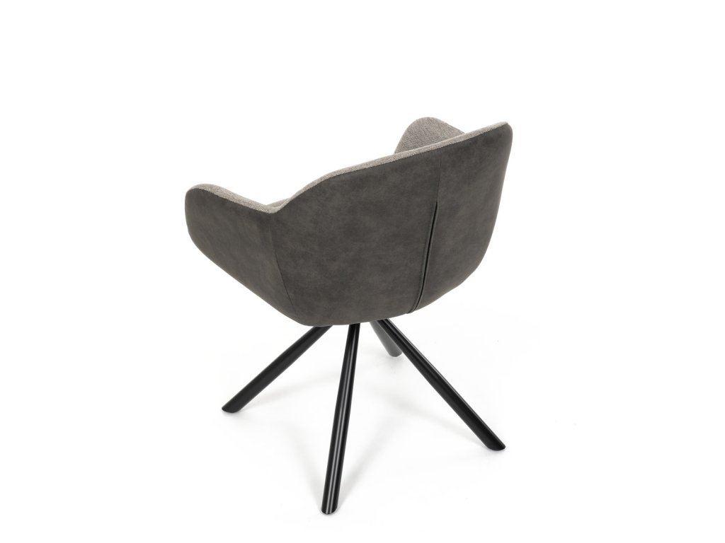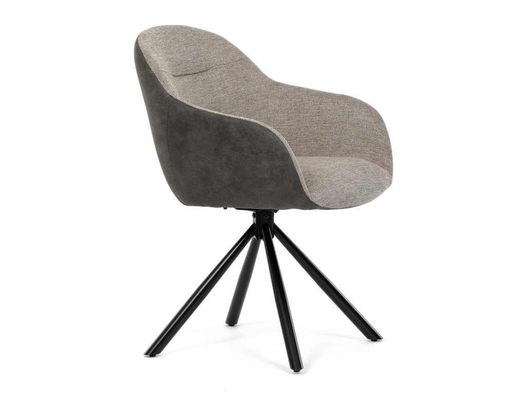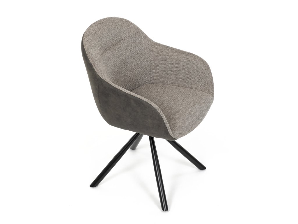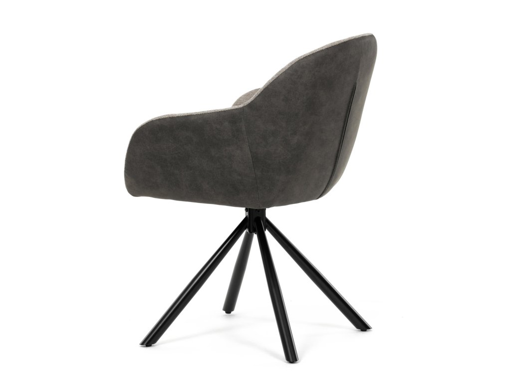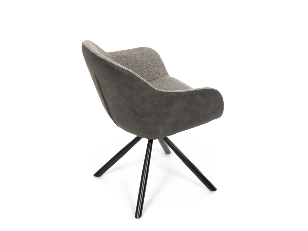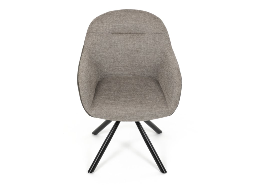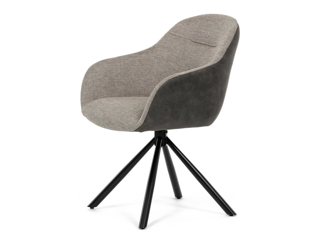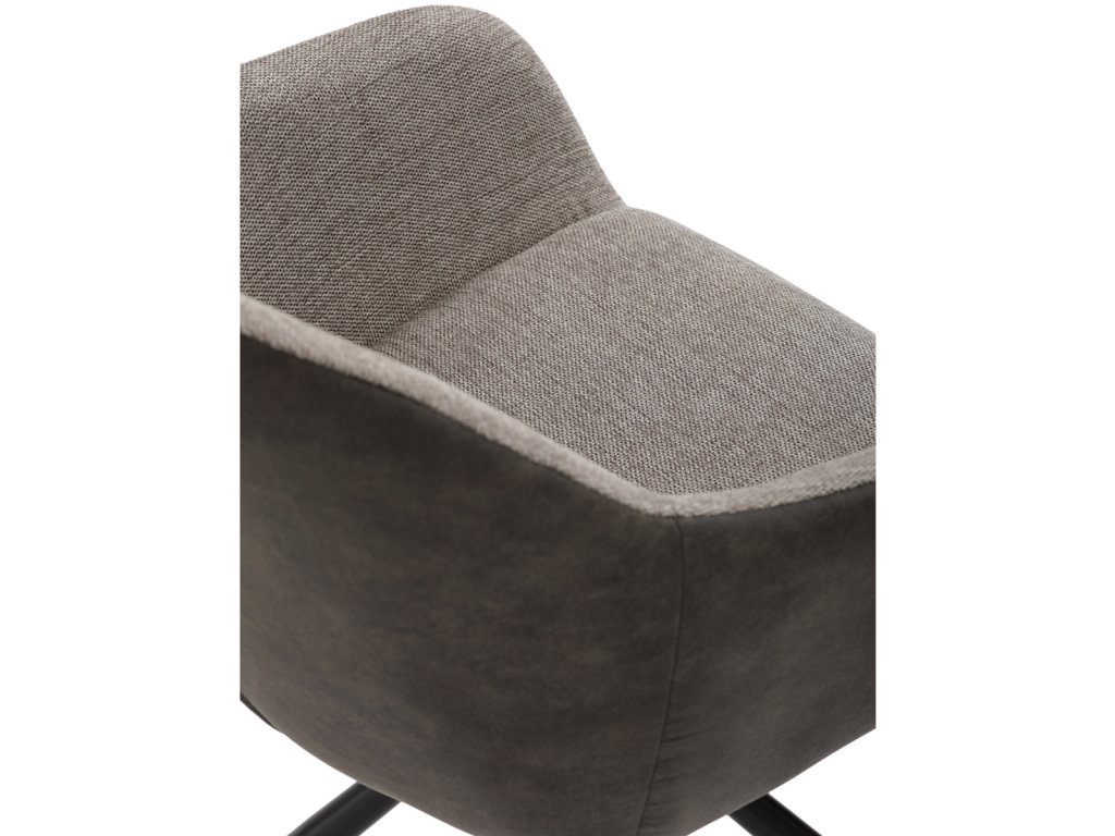 Židle jídelní, béžová látka a tmavě šedá látka v dekoru vintage kůže, černý kov, otočná P90°+ L90° s vratným mechanismem