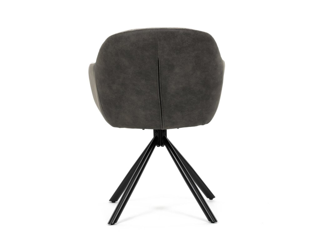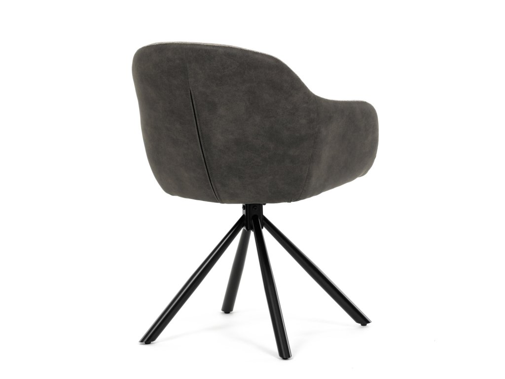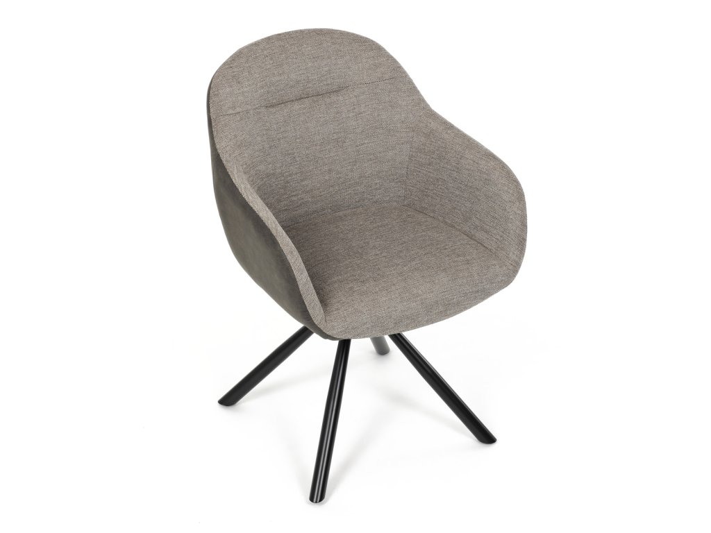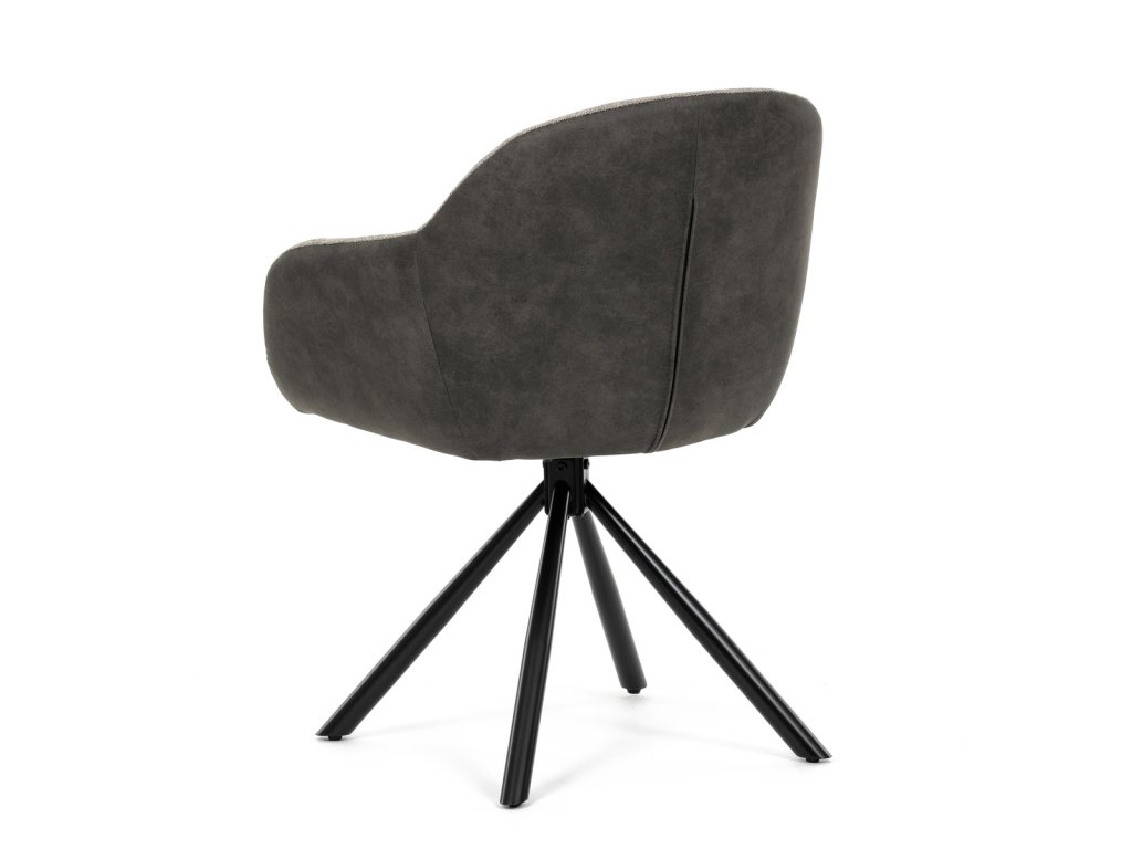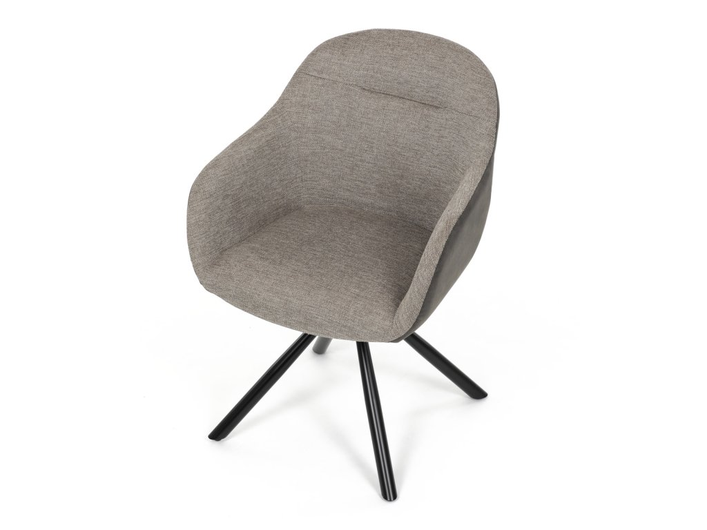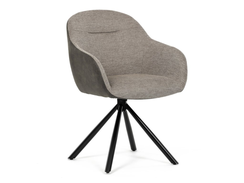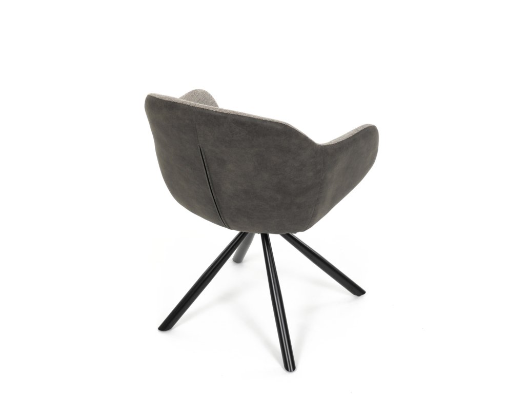 Židle jídelní, béžová látka a tmavě šedá látka v dekoru vintage kůže, černý kov, otočná P90°+ L90° s vratným mechanismem