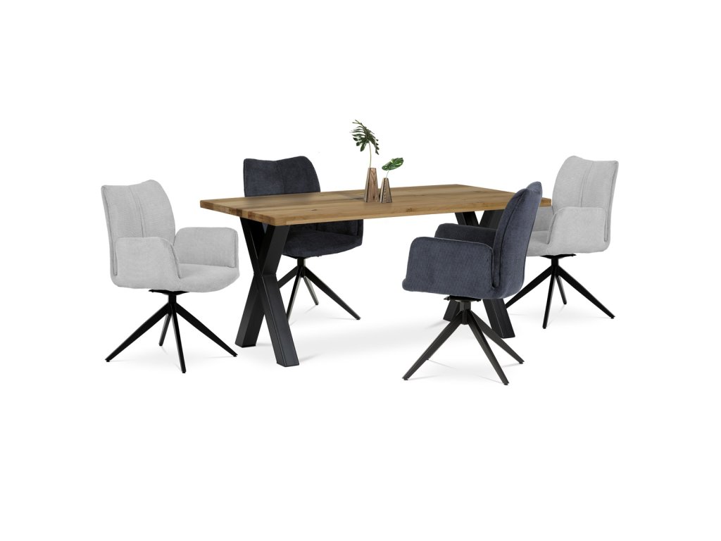 Židle jídelní, bílá látka, otočný mechanismus 180°, černý kov