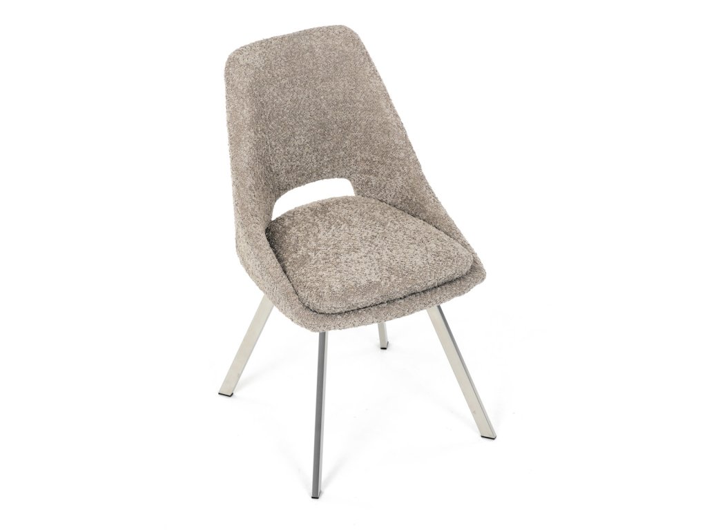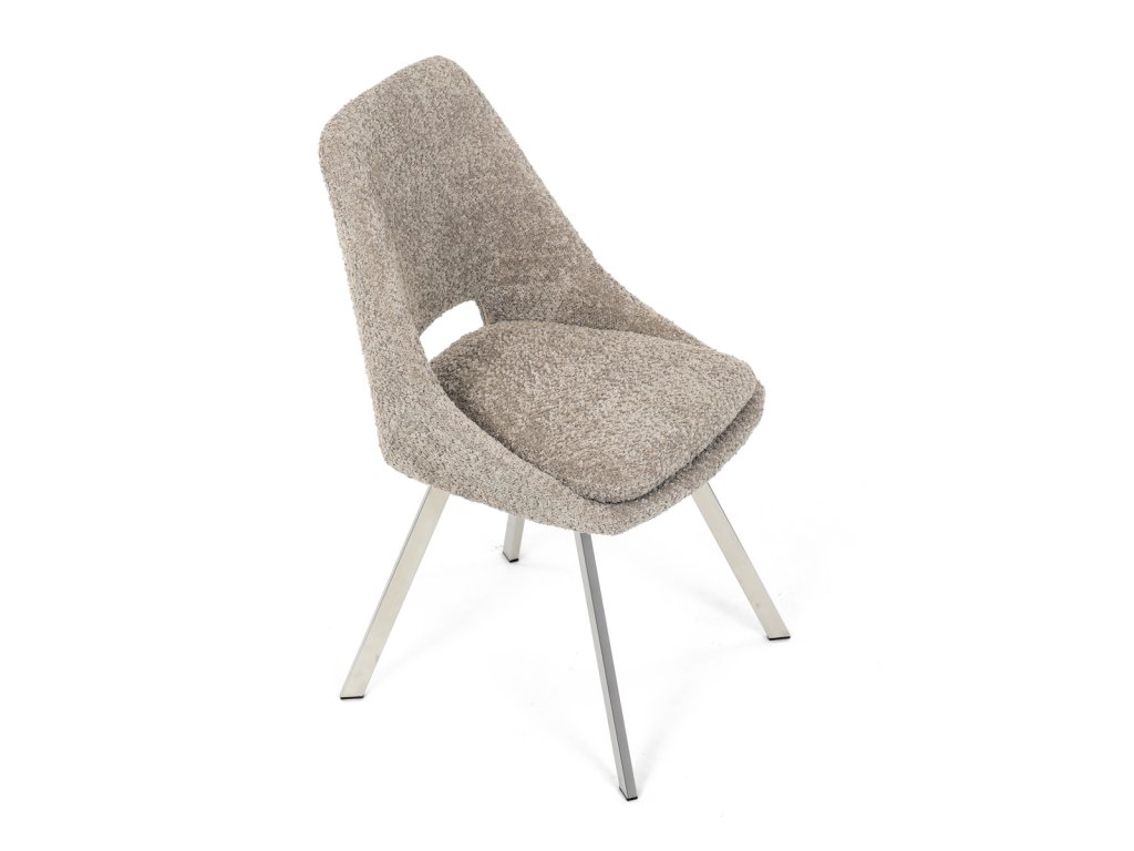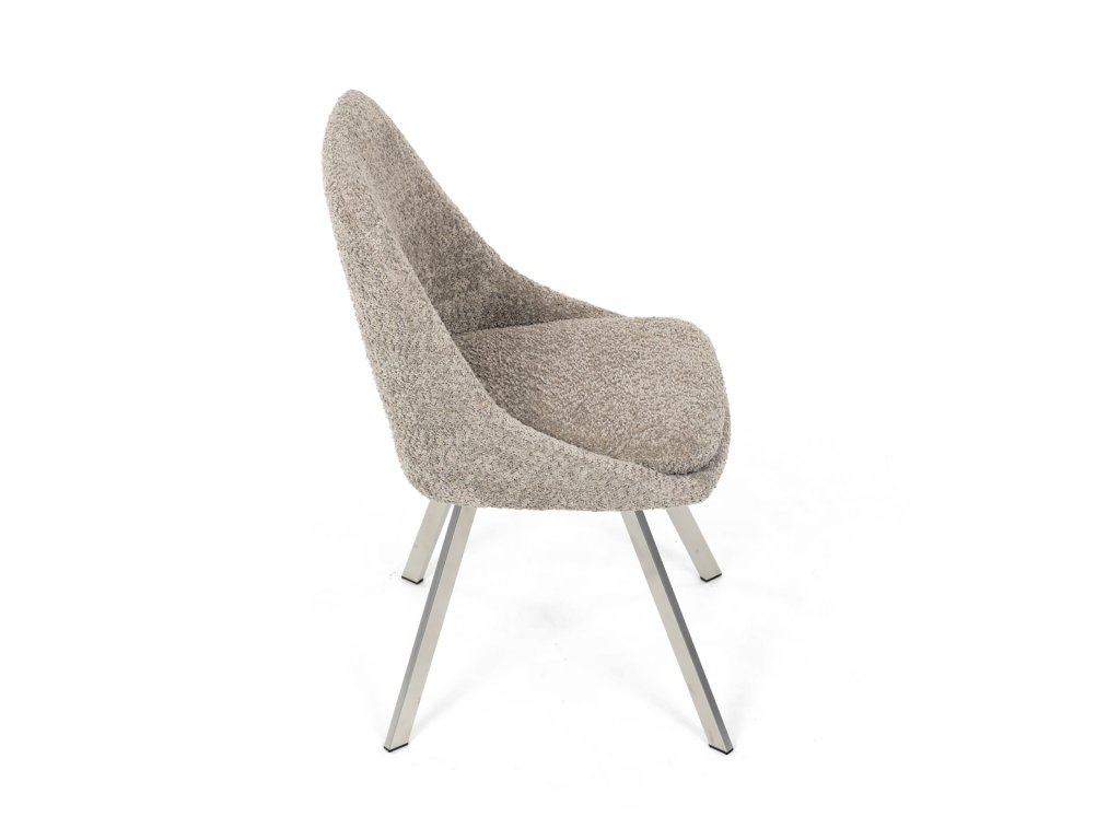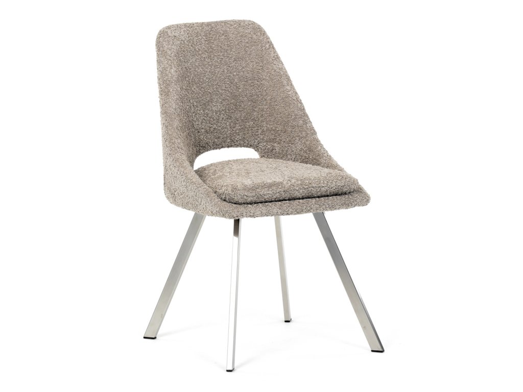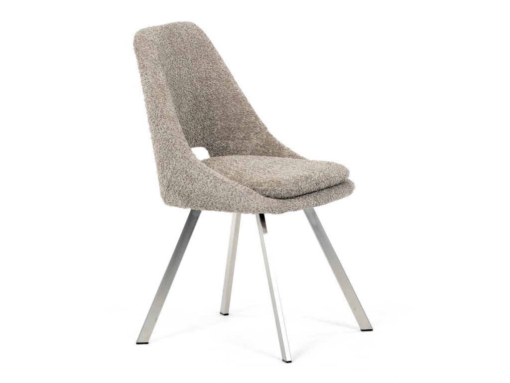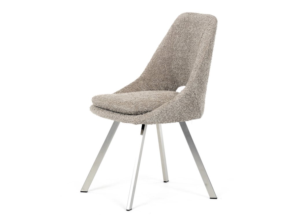 Židle jídelní, lanýžová látka, kovové nohy, broušená nerez.