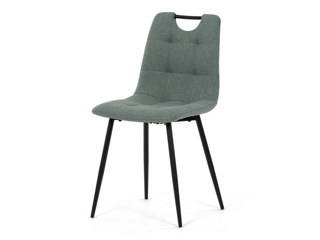 Židle jídelní, madlo, snadno čistitelná zelená látka, černý matný lak, kovové nohy