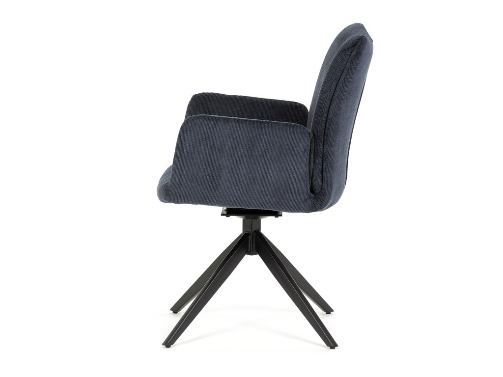 Židle jídelní, modrá látka, otočný mechanismus 180°, černý kov
