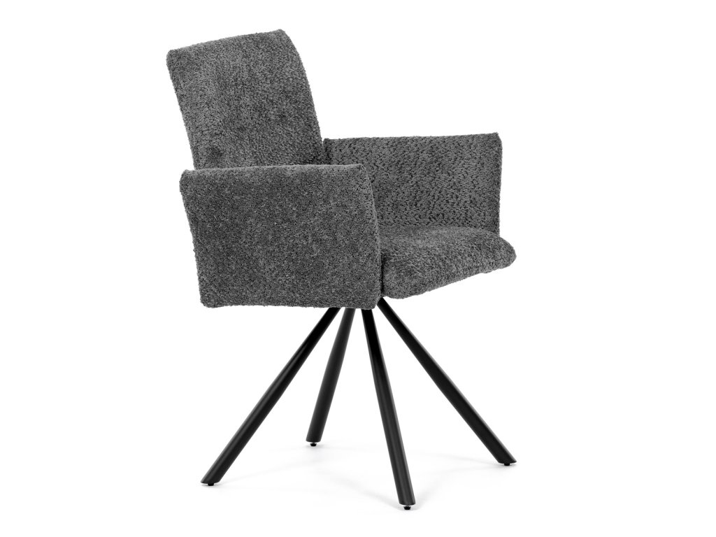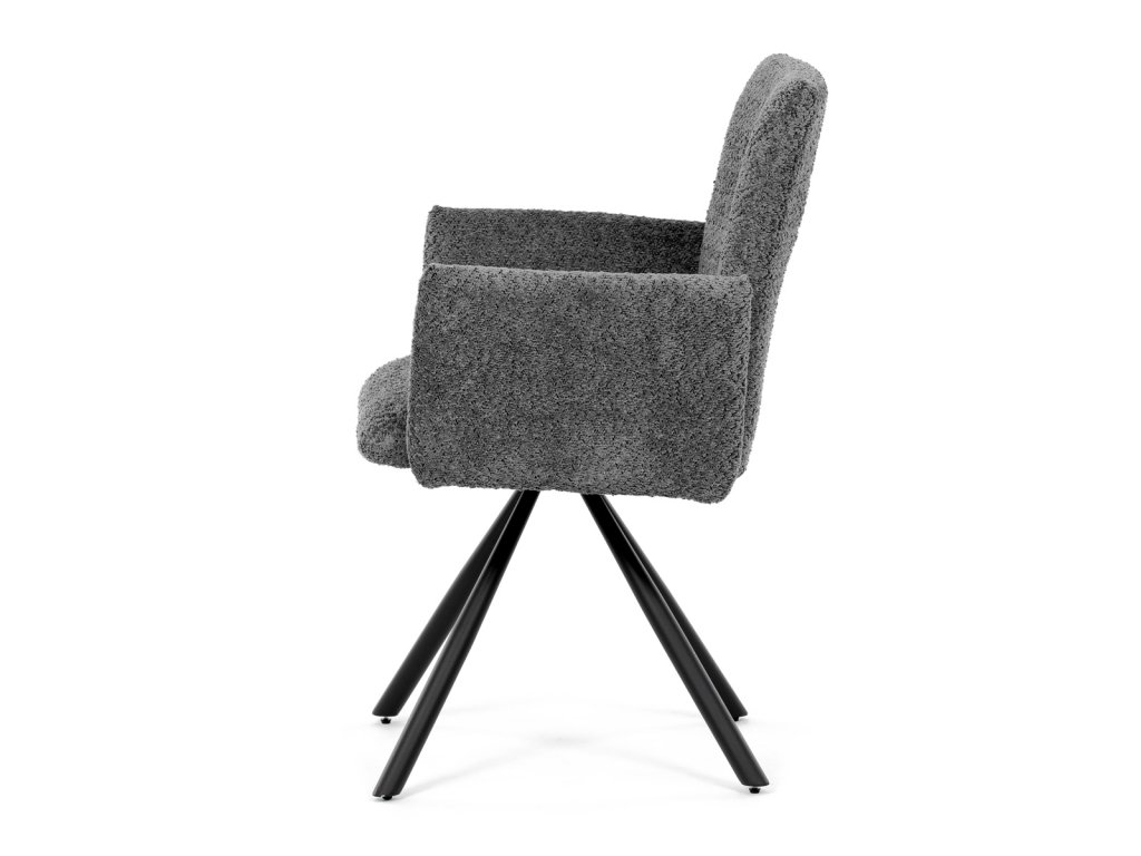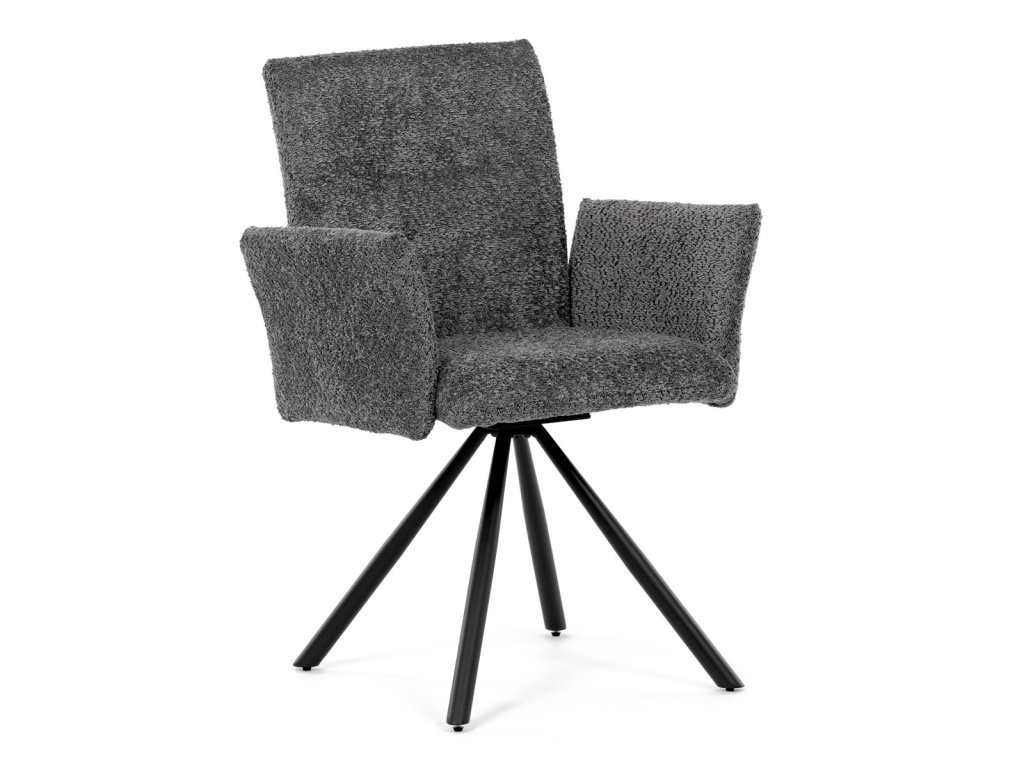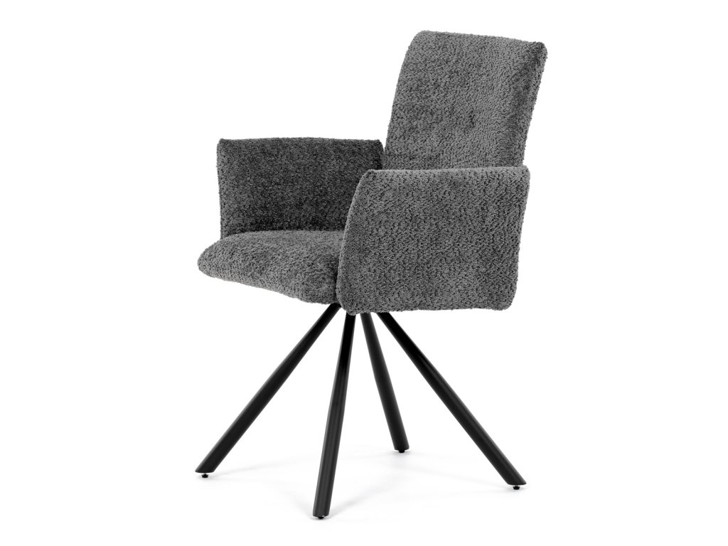 Tato moderní jídelní židle značky Autronic v industriálním stylu kombinuje pohodlí s funkčností. Otočná židle s robustní kovovou podnoží je vybavena pohodlnými područkami a látkou Bouclé, která zajišťuje příjemný a stylový vzhled. Polstrování z PU pěny nabízí měkké sezení, zatímco otočný mechanismus L90°/P90° s funkcí automatického vracení sedáku do základní polohy umožňuje snadné otáčení pro maximální flexibilitu. Černá kovová centrální podnož dodává židli stabilitu a moderní vzhled. Tato židle je ideální pro elegantní jídelny, kde se kombinuje komfort s moderním designem.Doplňkové parametry