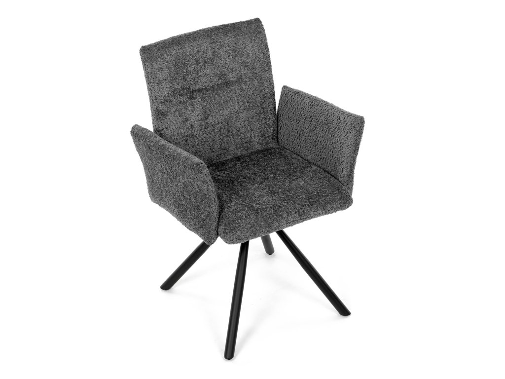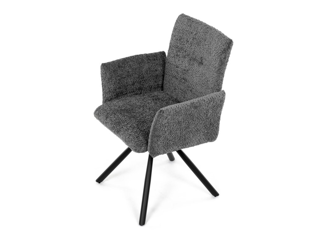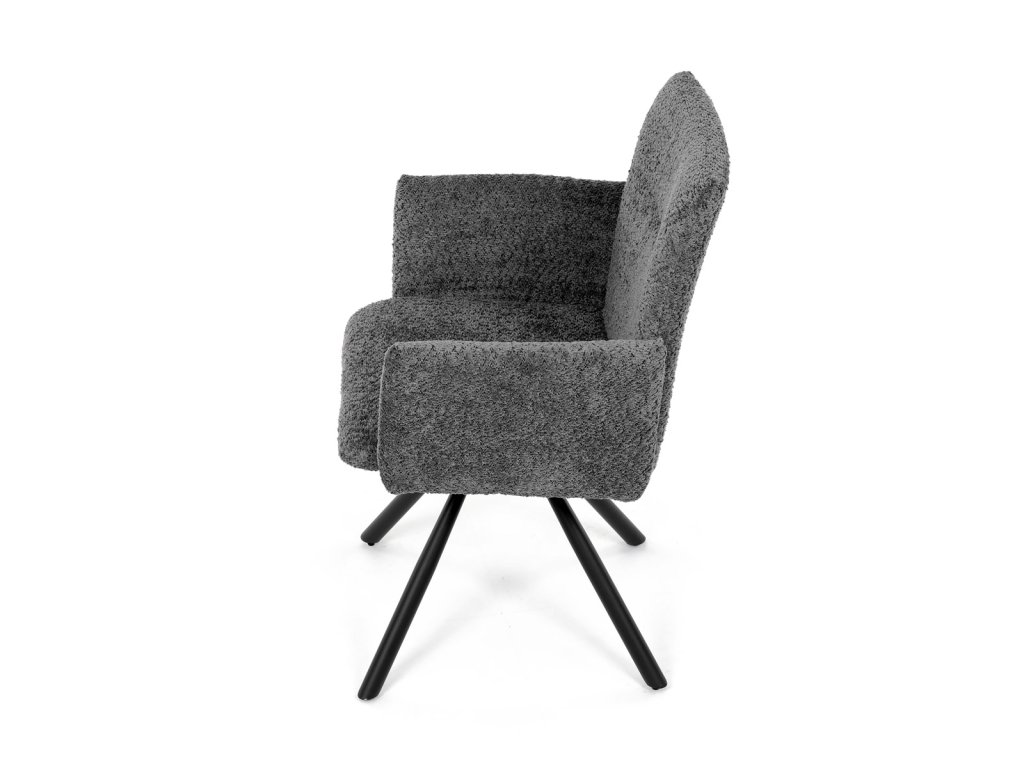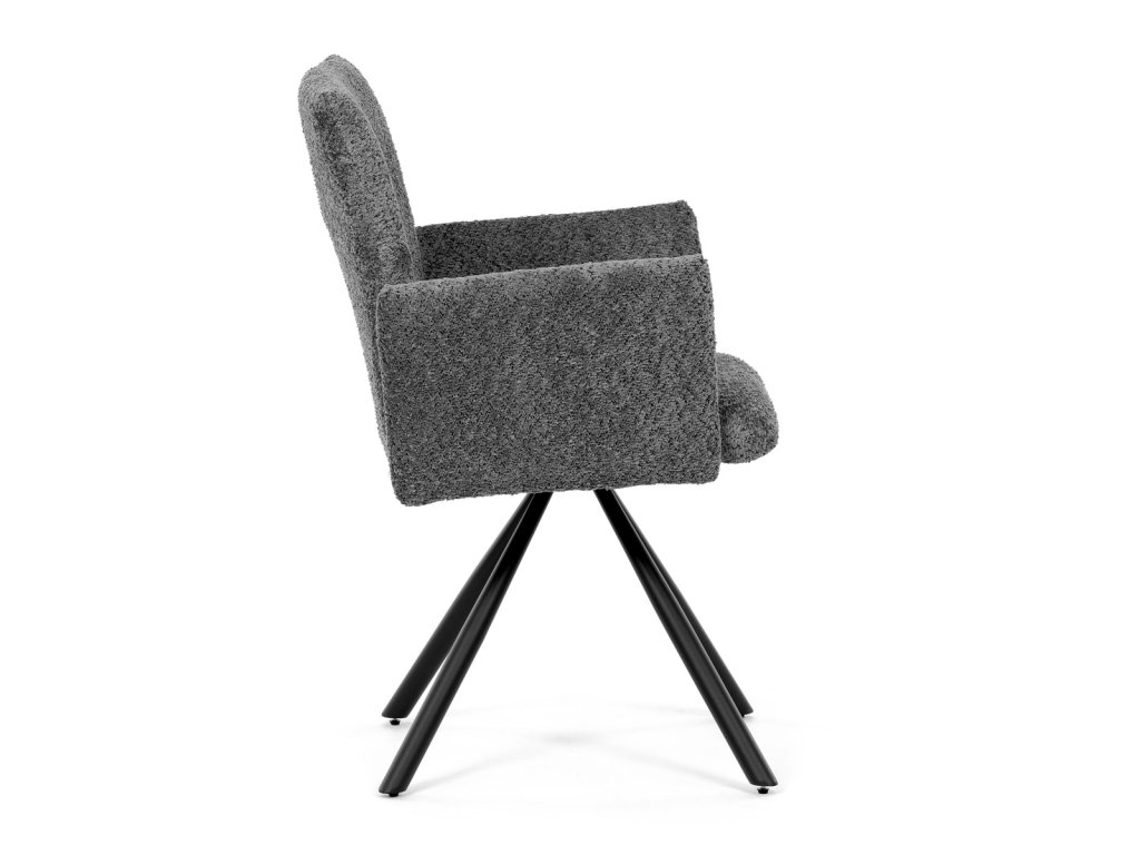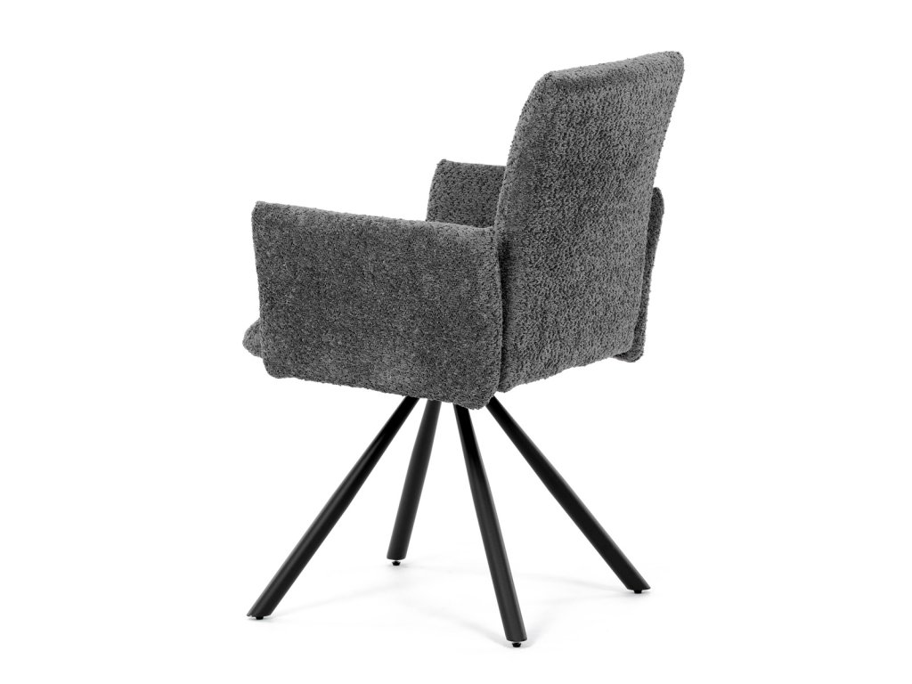Tato moderní jídelní židle značky Autronic v industriálním stylu kombinuje pohodlí s funkčností. Otočná židle s robustní kovovou podnoží je vybavena pohodlnými područkami a látkou Bouclé, která zajišťuje příjemný a stylový vzhled. Polstrování z PU pěny nabízí měkké sezení, zatímco otočný mechanismus L90°/P90° s funkcí automatického vracení sedáku do základní polohy umožňuje snadné otáčení pro maximální flexibilitu. Černá kovová centrální podnož dodává židli stabilitu a moderní vzhled. Tato židle je ideální pro elegantní jídelny, kde se kombinuje komfort s moderním designem.Doplňkové parametry