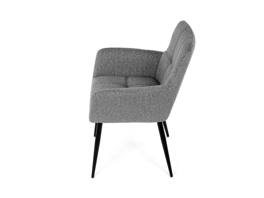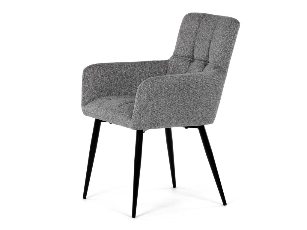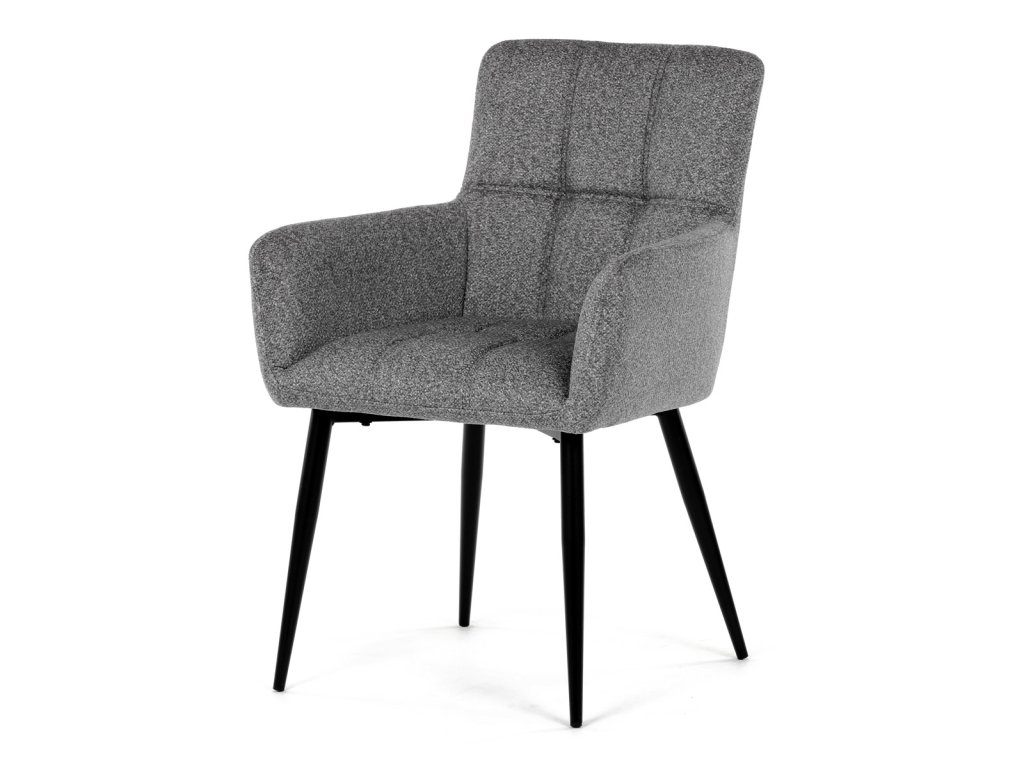 Elegantní šedá jídelní židle od značky Autronic skvěle doplní moderní i klasické interiéry. Tato stylová židle nabízí vysoký komfort díky čalounění z kvalitní látky a mekkému sedáku z PU pěny. Černé kovové nohy zajišťují stabilitu a dodávají židli jemný industriální nádech. Komfortní područky a ergonomické provedení oceníte při každém posezení. Židle se hodí nejen do domácí jídelny, ale i do restauračních prostor, kde vytvoří útulnou atmosféru.Doplňkové parametry