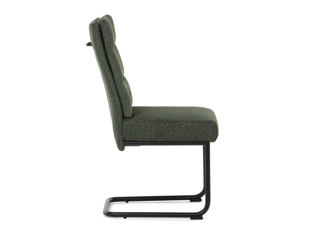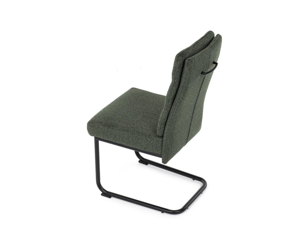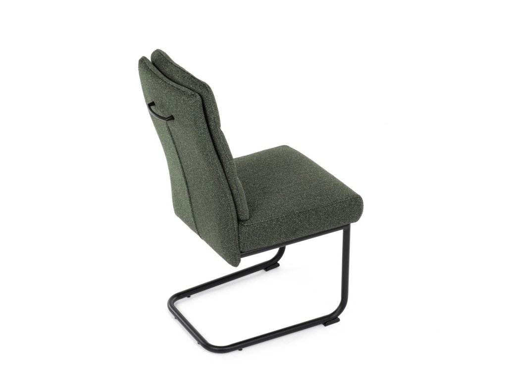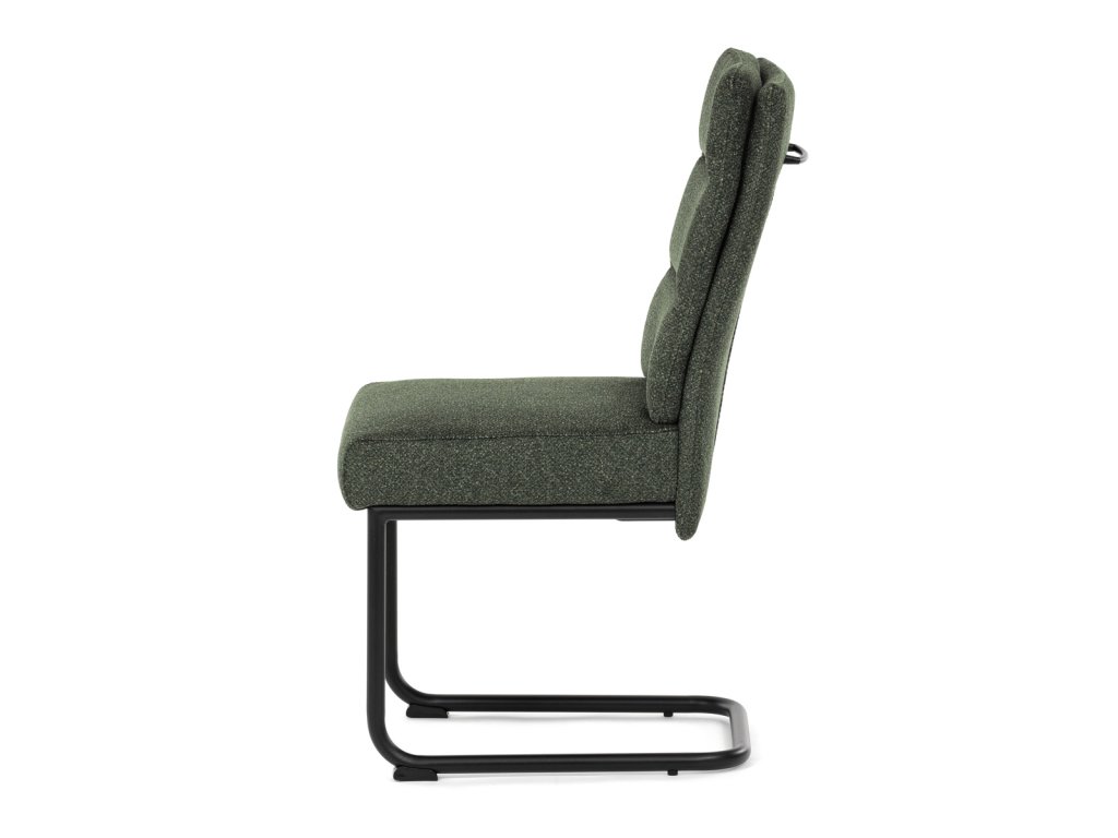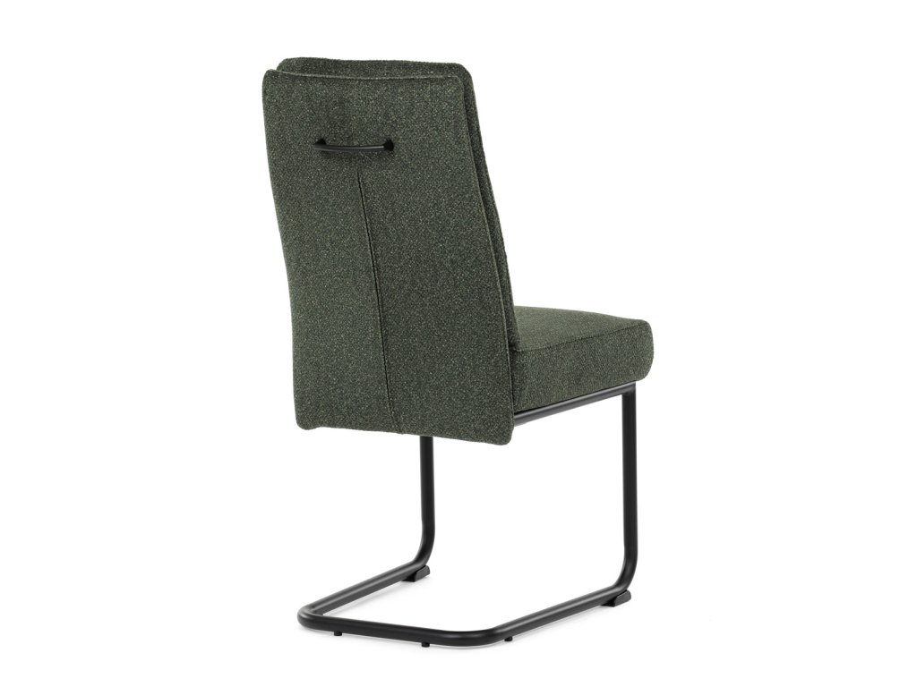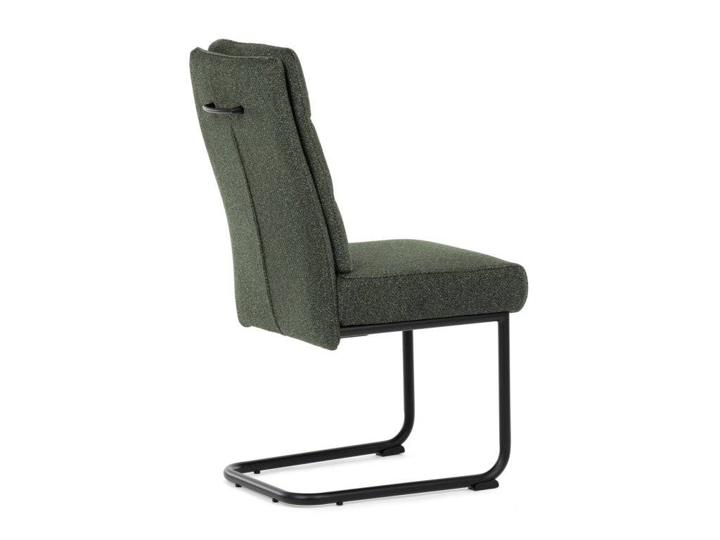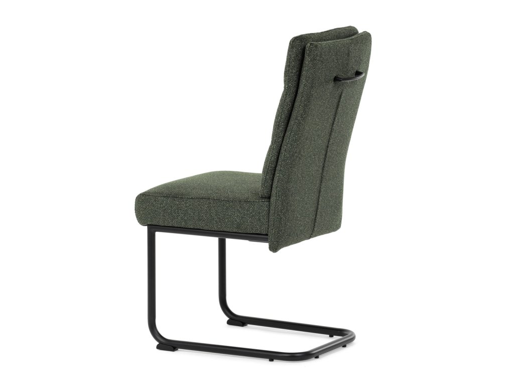 Židle jídelní, taštičkové pružiny v sedáku, madlo na opěráku, zelená látka, černý kov
