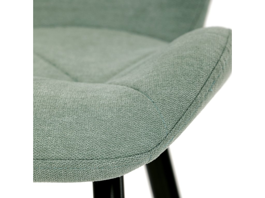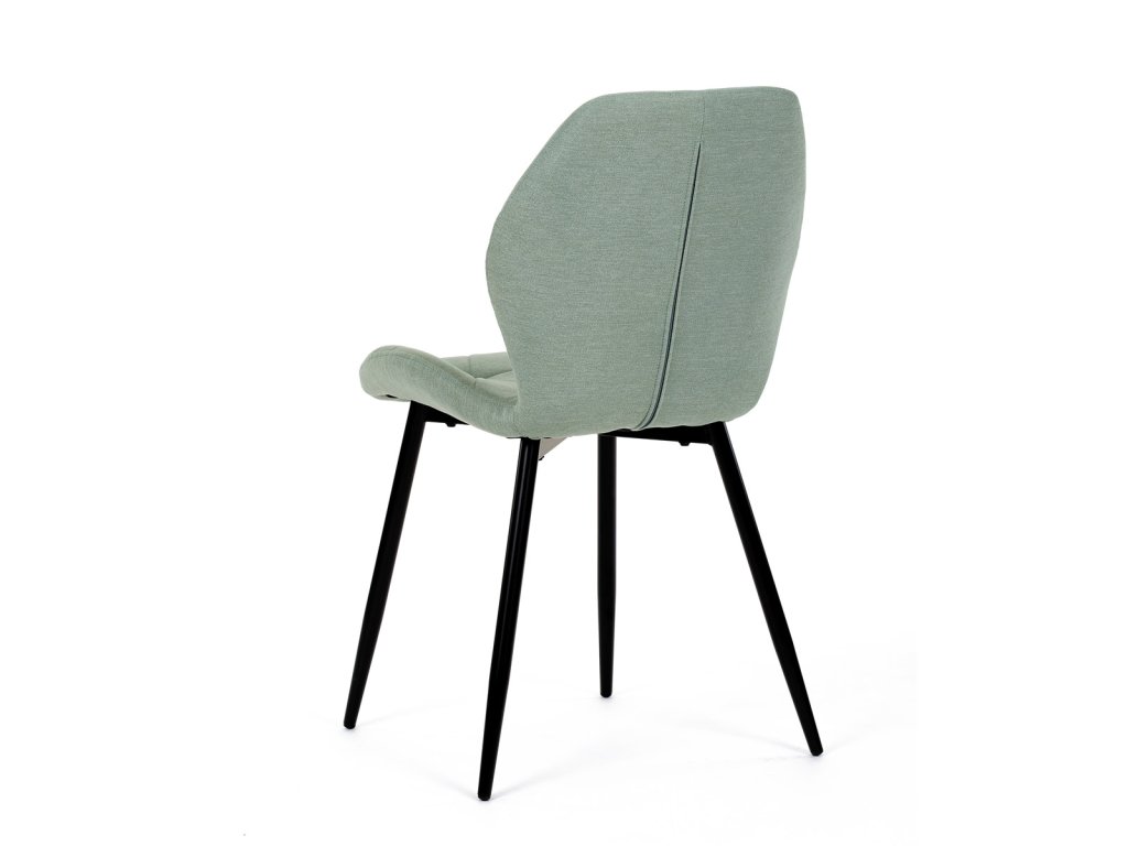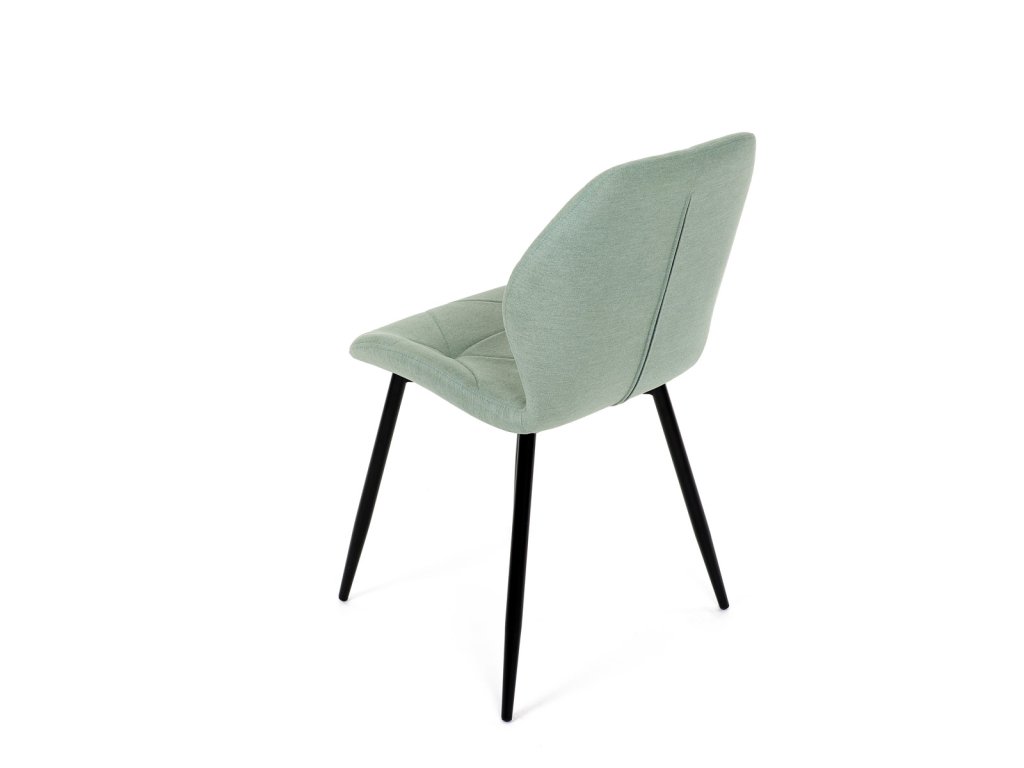 Tato moderní jídelní židle v jemně zelené barvě je skvělým doplňkem každého interiéru. Díky svému elegantnímu designu a pohodlnému čalounění je ideální volbou pro Vaši jídelnu, kuchyň nebo pracovní prostor. Židle je čalouněná kvalitní látkou, která je měkká na dotek a zároveň odolná proti opotřebení. Ergonomicky tvarované sedadlo a opěradlo s dekorativním prošíváním poskytují vysoký komfort i při delším sezení. Židle stojí na pevných kovových nohách v černém provedení, které zajišťují stabilitu a dlouhou životnost. Nohy jsou elegantně zkosené, což dodává židli moderní vzhled a zajišťuje pevnou stabilitu.Doplňkové parametry