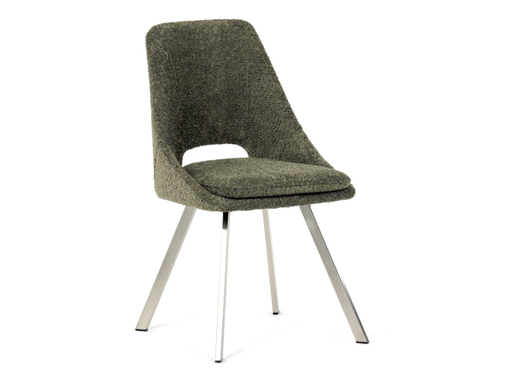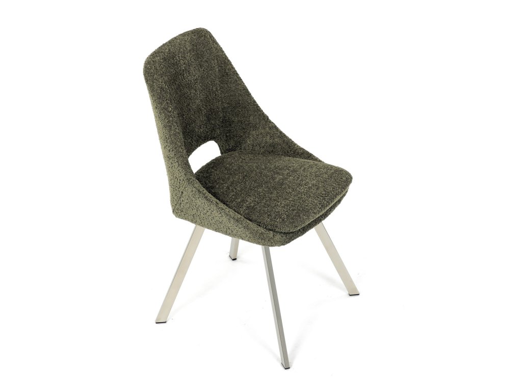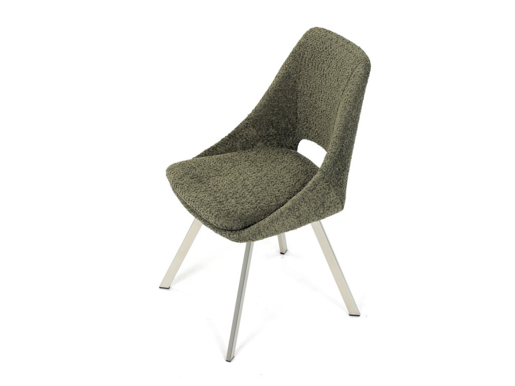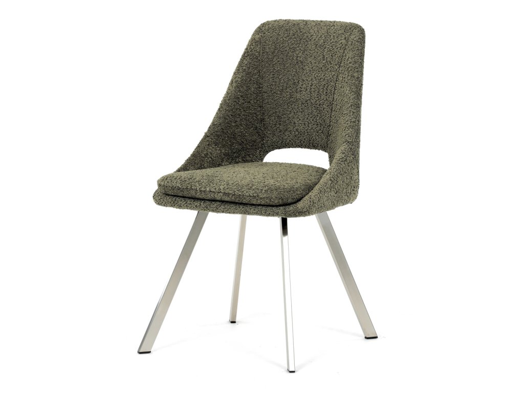 Židle jídelní, zelená látka, kovové nohy, broušená nerez.