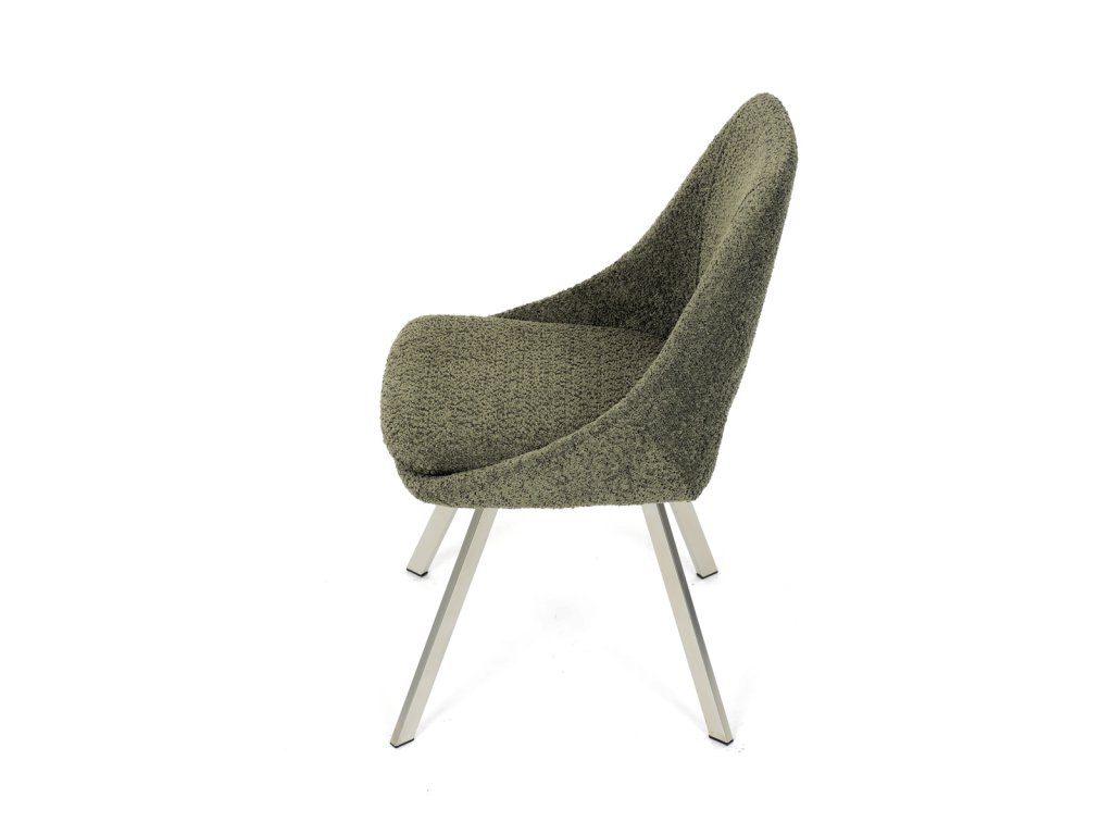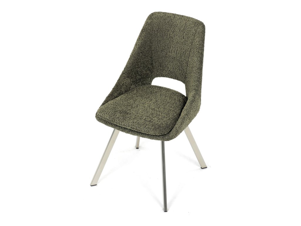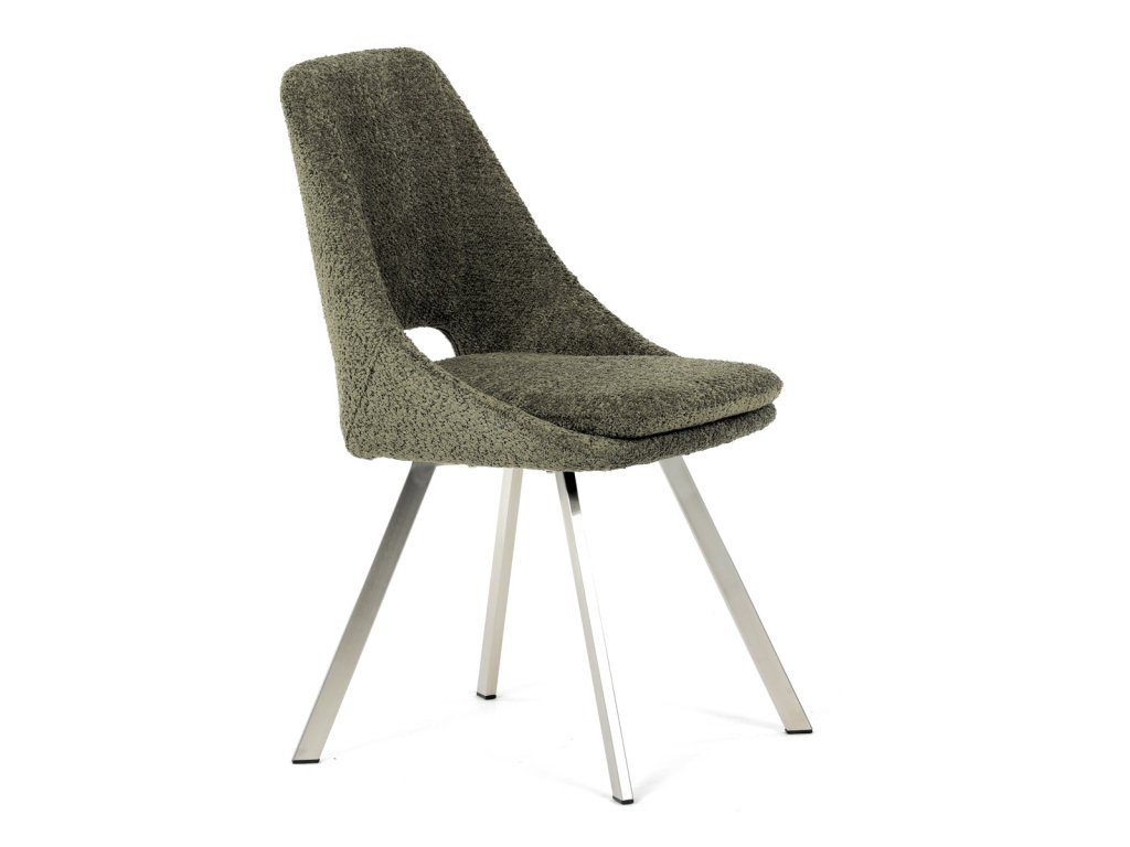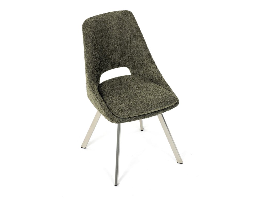 Židle jídelní, zelená látka, kovové nohy, broušená nerez.