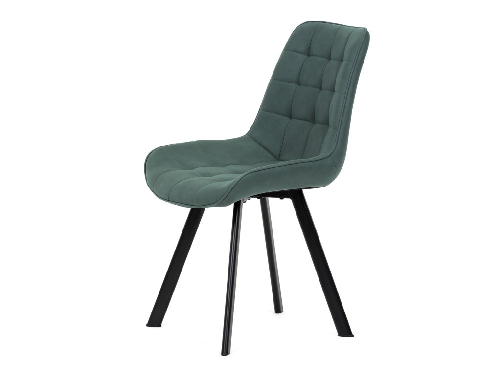 Židle jídelní, zelená látka v dekoru broušené kůže, černý kov