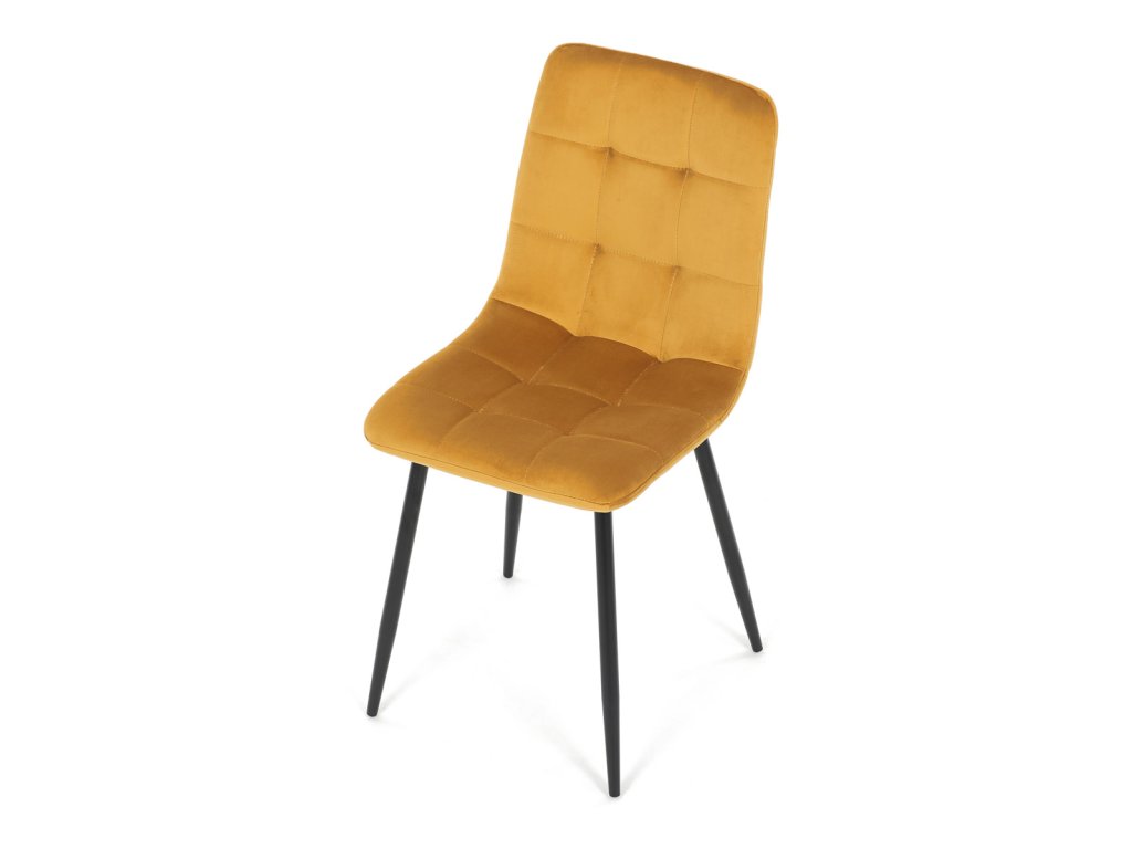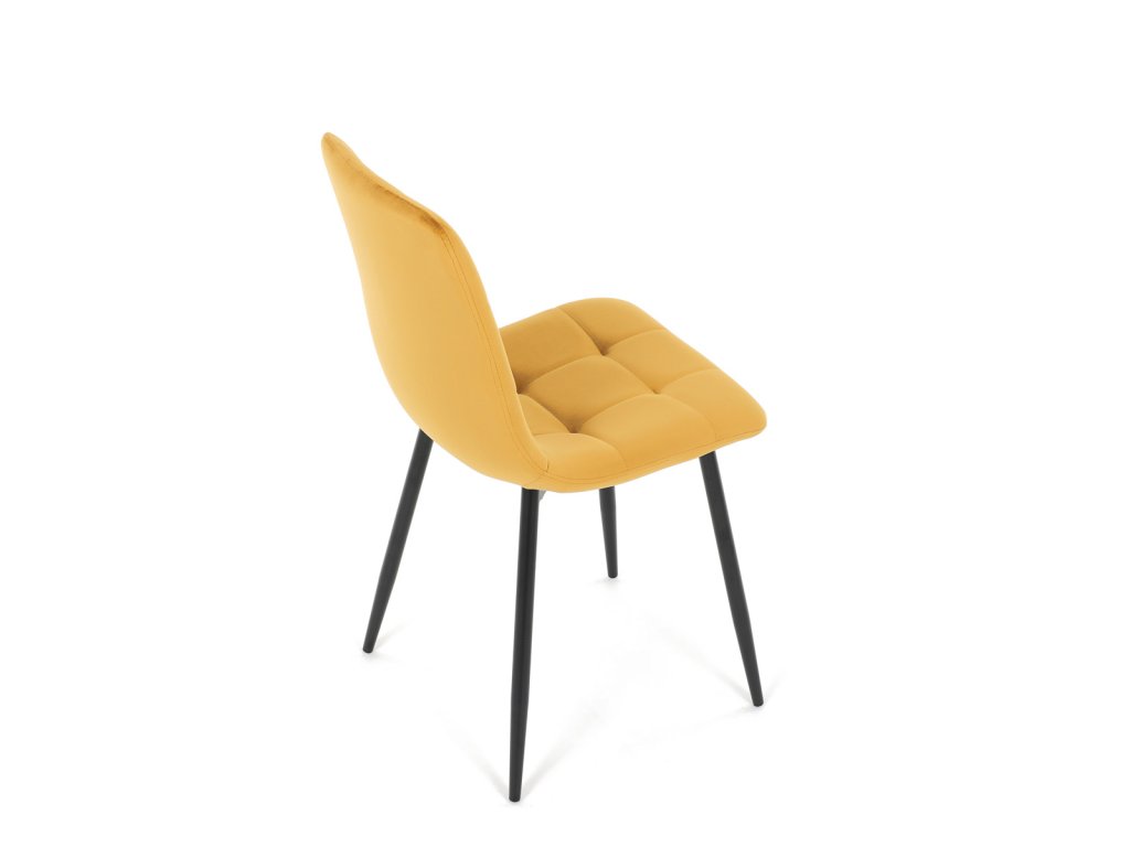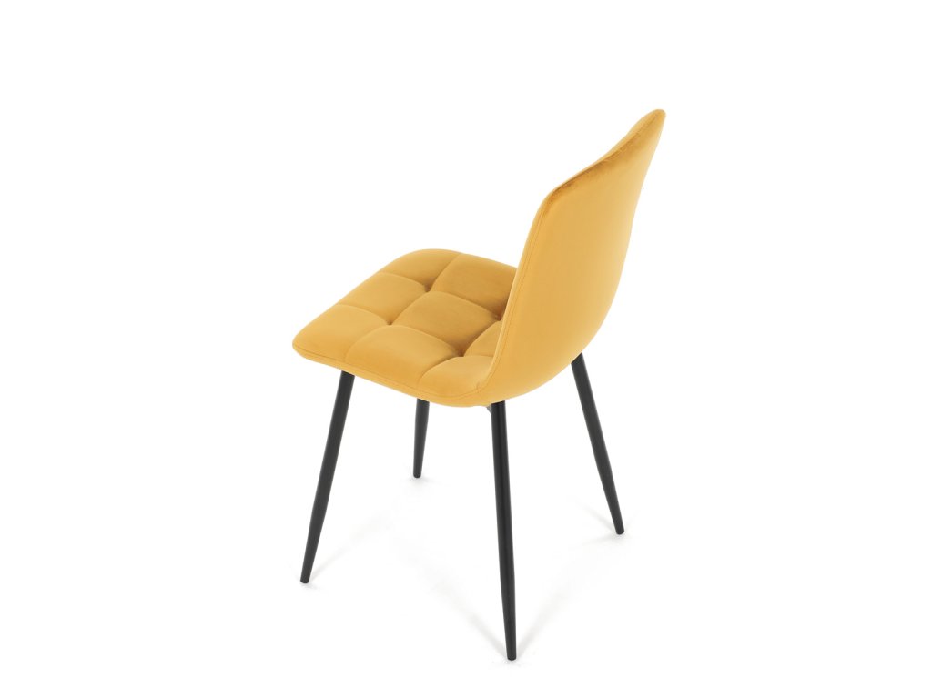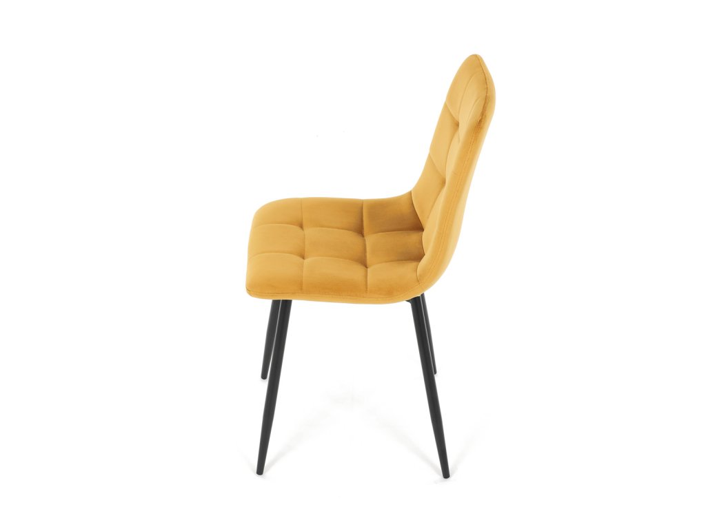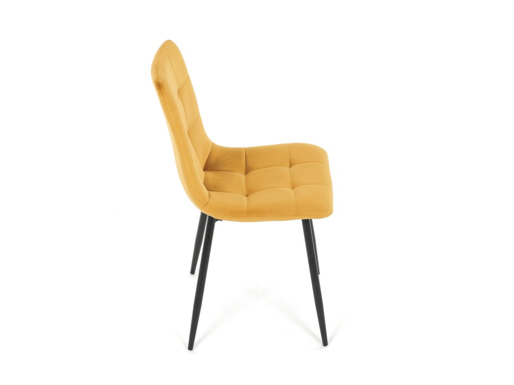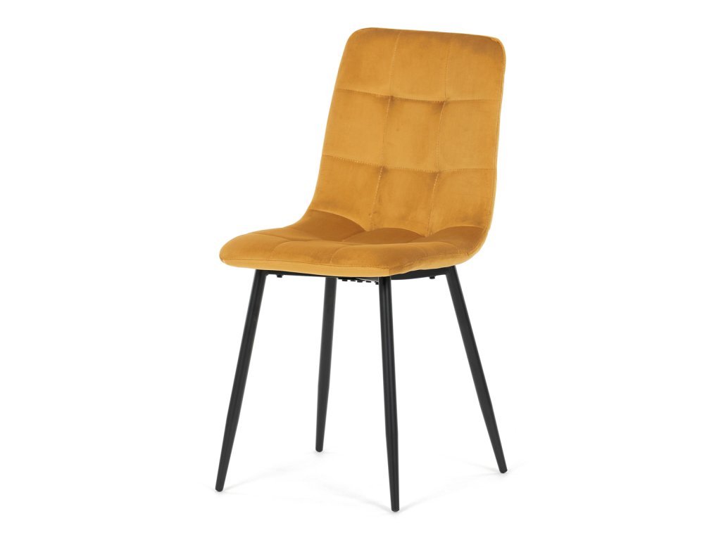 Židle jídelní, žlutá sametová látka, nohy černý kov