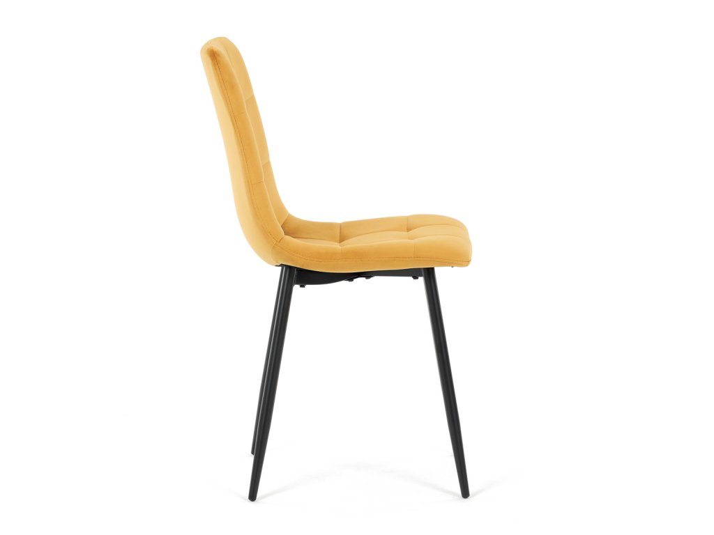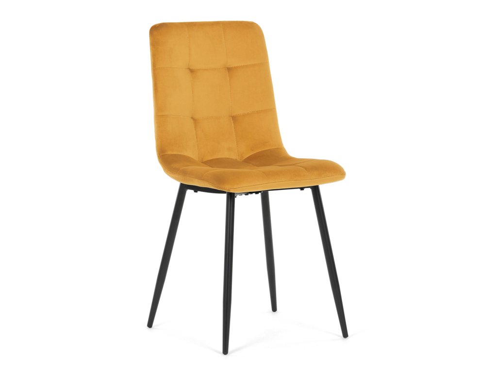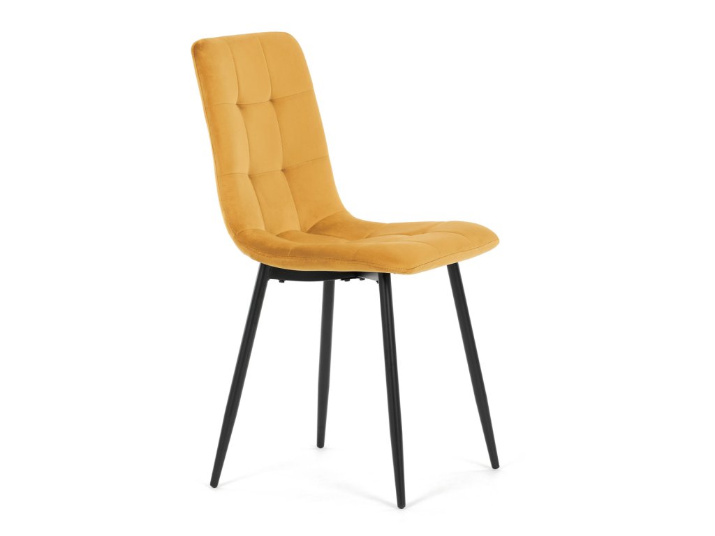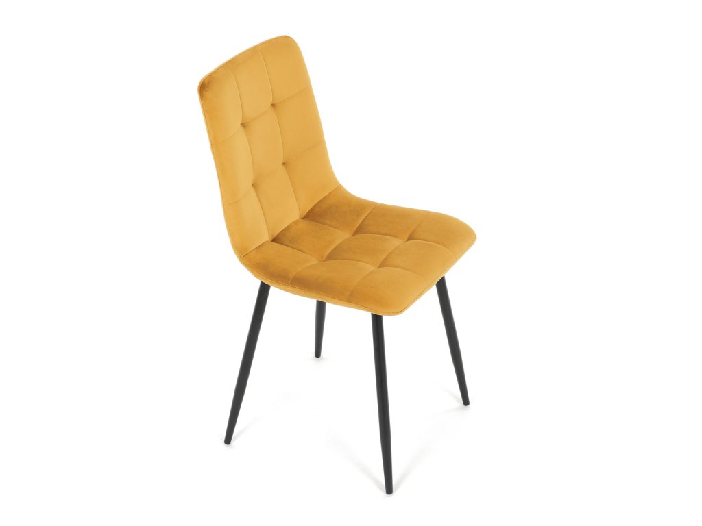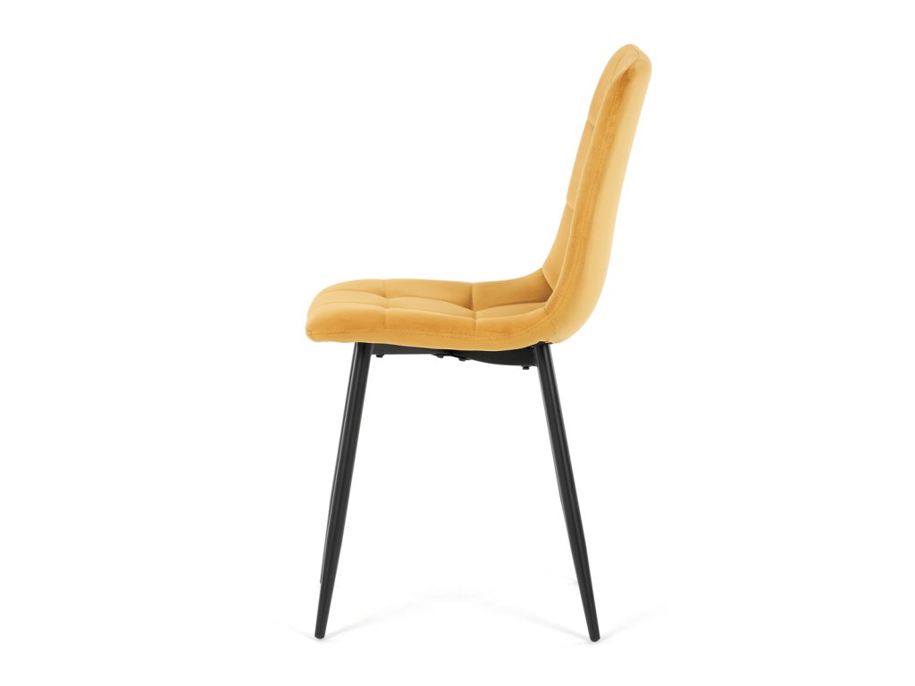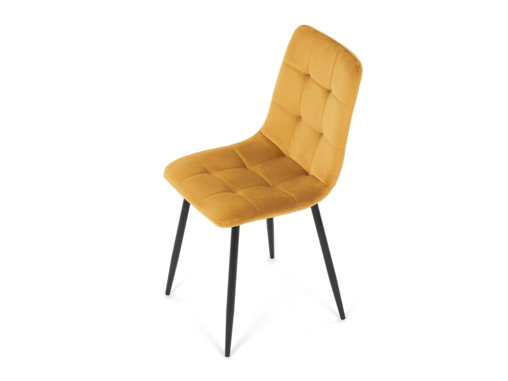 Židle jídelní, žlutá sametová látka, nohy černý kov