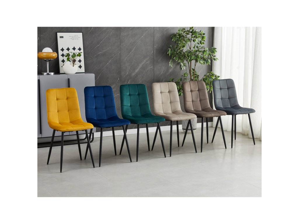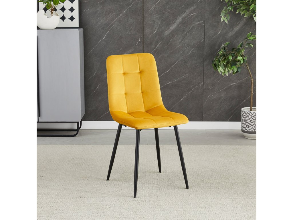 Jídelní židle značky Autronic v elegantní žluté barvě je ideální volbou pro stylové interiéry. Čalounění ze sametové látky působí luxusně a zajišťuje pohodlí při sezení. Decentní prošívání zdůrazňuje precizní zpracování, zatímco stabilní černé kovové nohy podtrhují minimalistický vzhled s industriálním nádechem. Díky kvalitnímu polstrování z PU pěny je vhodná pro každodenní stolování i delší posezení. Tato židle přináší harmonii mezi funkčností a moderním designem, který oživí každou jídelnu.Doplňkové parametry