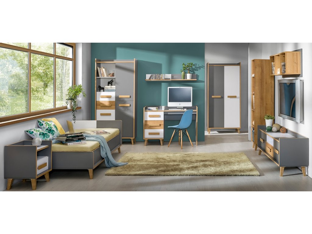 Moderní police Werso 12 dodá vašemu interiéru zajímavý vzhled. Werso patří do sektorového nábytku, který je určen do obývacích, dětských a studentských pokojů. Barevné provedení v kombinaci : antracit, dub riviera.